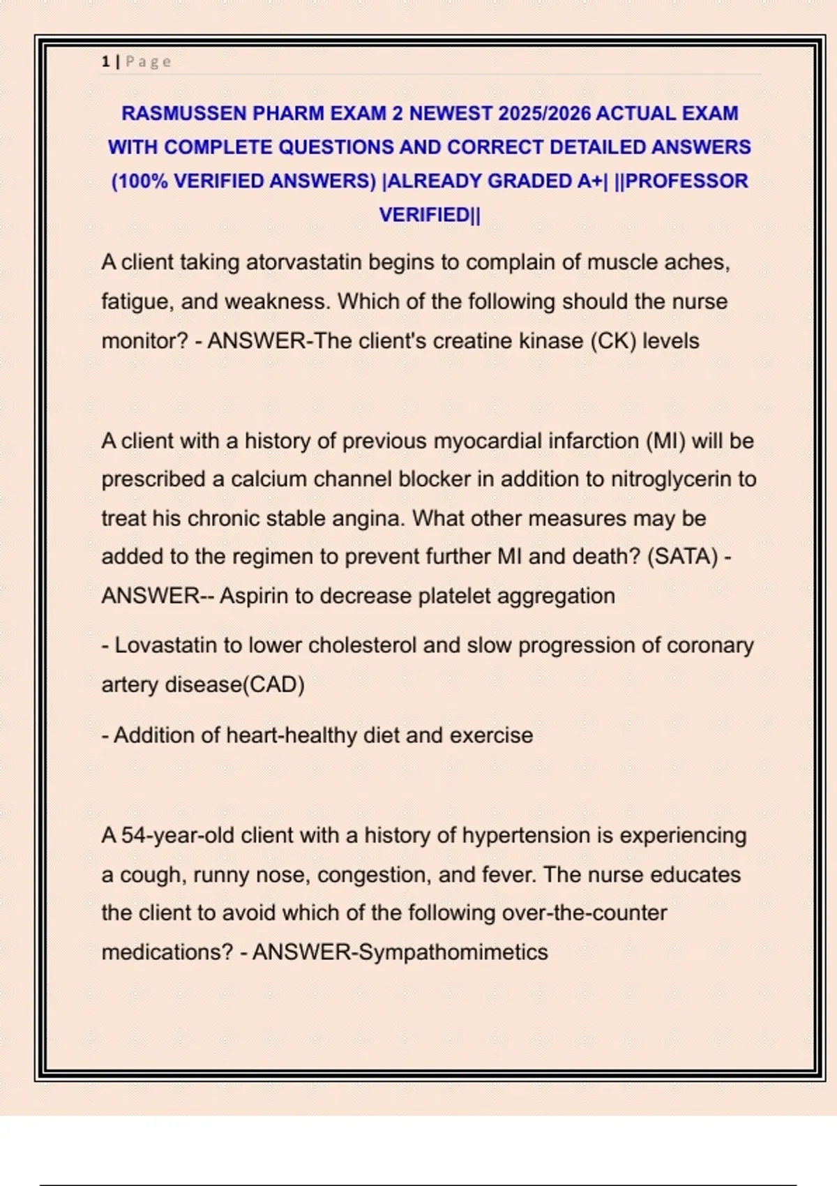 RASMUSSEN PHARM EXAM 2 NEWEST 2025/2026 ACTUAL EXAM