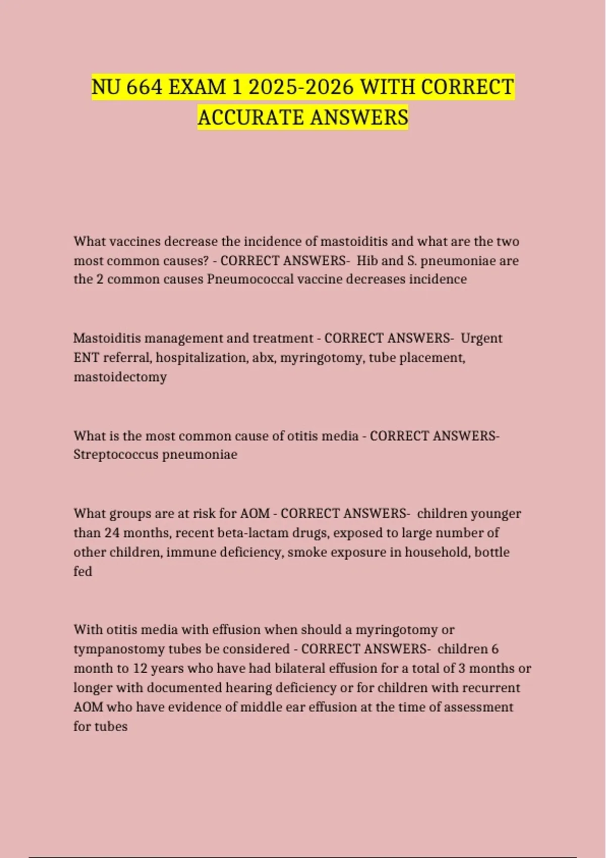 NU 664 EXAM WITH CORRECT ACCURATE ANSWERS