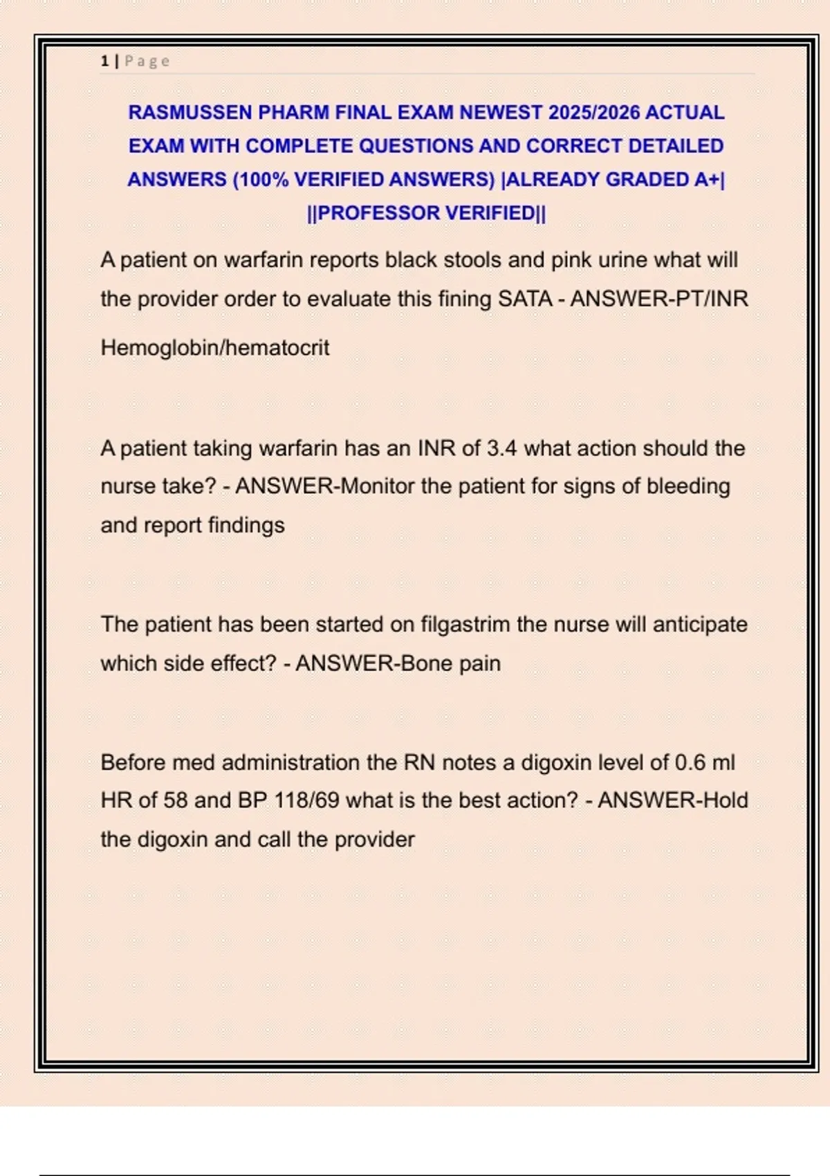RASMUSSEN PHARM FINAL EXAM NEWEST 2025/2026 ACTUAL
