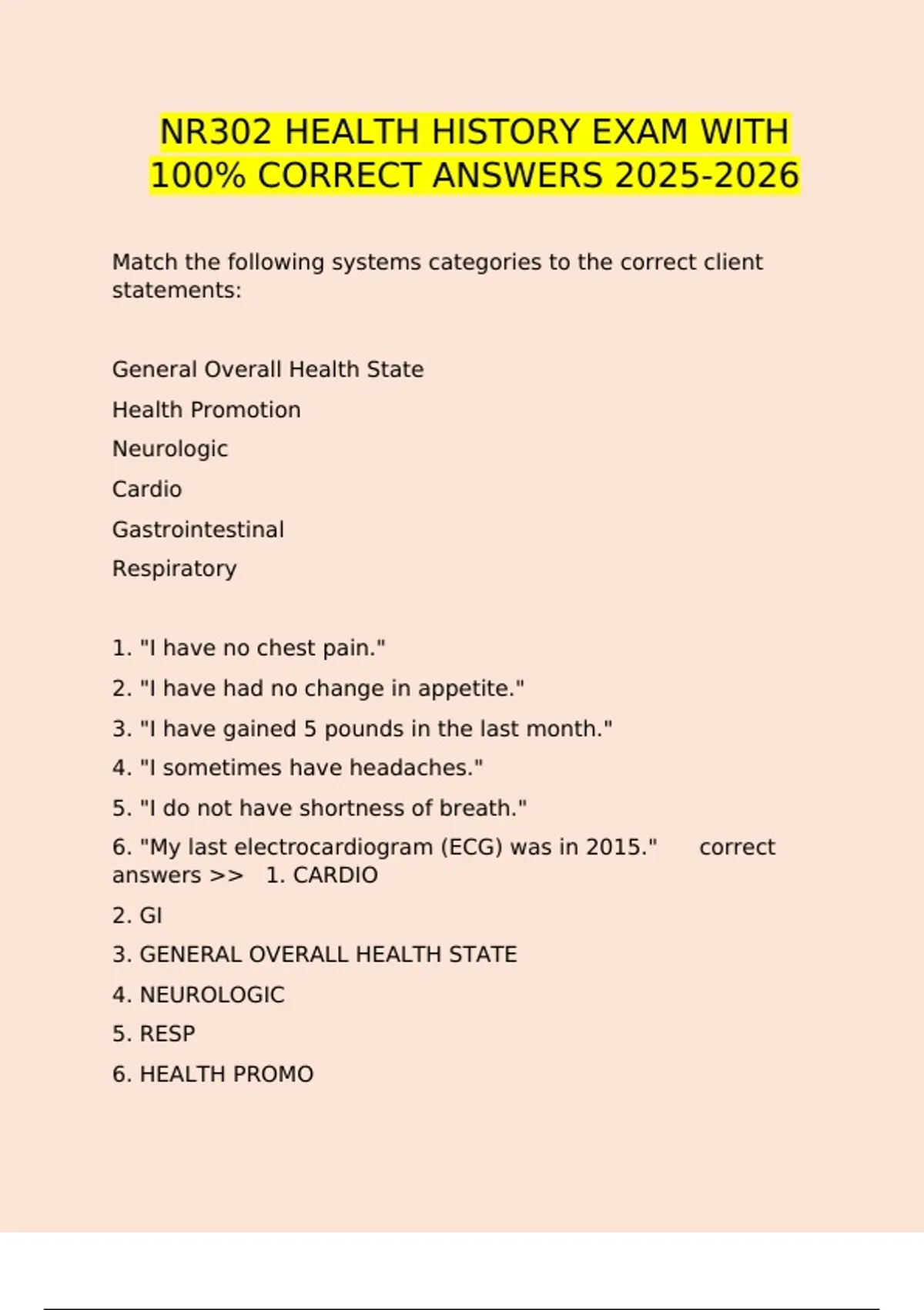 of systems. correct answers >> HEALTH HISTORY