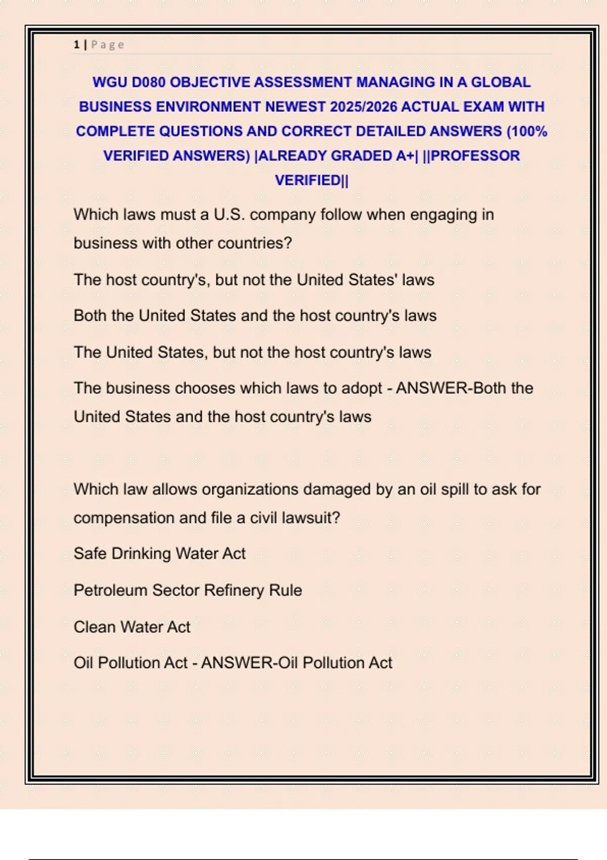 WGU D080 OBJECTIVE ASSESSMENT MANAGING IN A GLOBAL