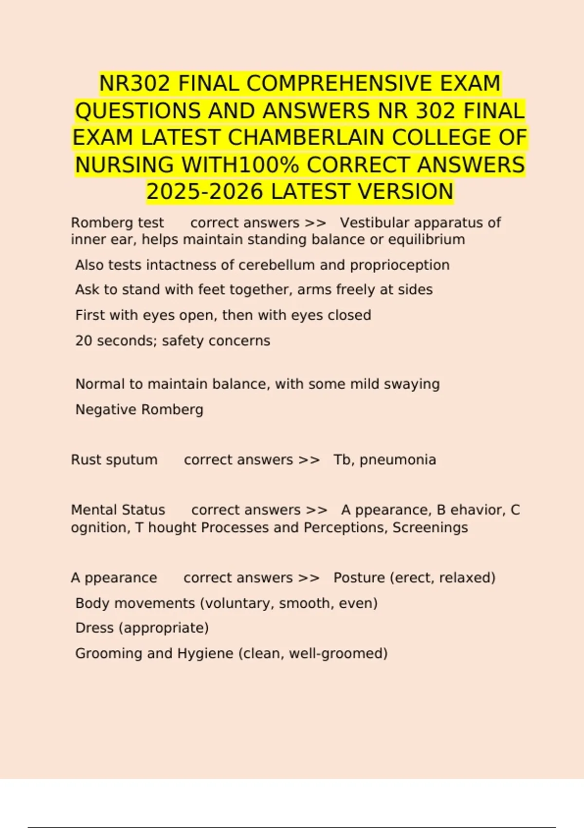 NR302 FINAL COMPREHENSIVE EXAM QUESTIONS AND ANSWERS NR 302 FINAL EXAM LATEST CHAMBERLAIN COLLEGE OF NURSING WITH100% CORRECT ANSWERS LATEST VERSION