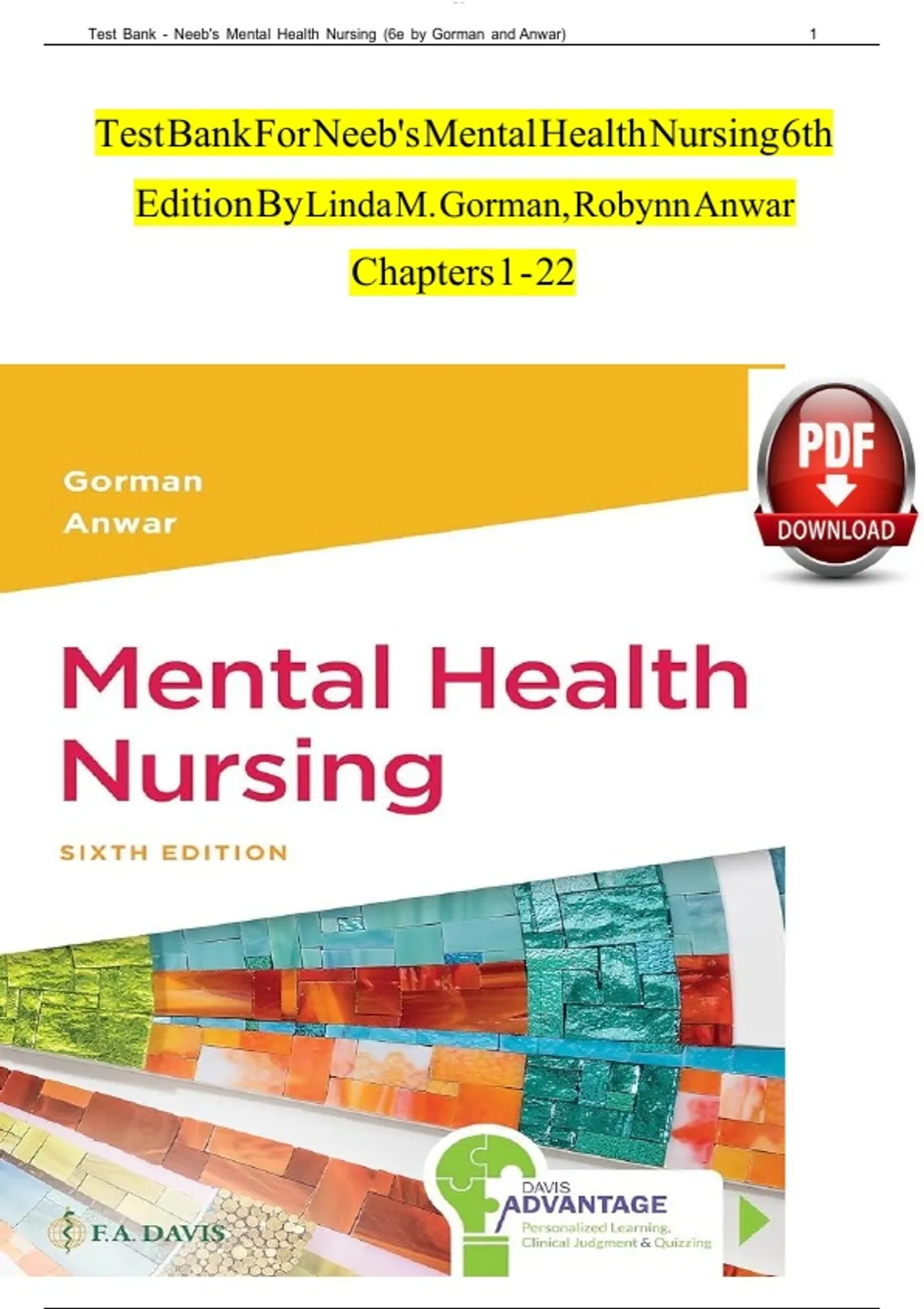 Test Bank - Neeb's Mental Health Nursing (6e by Gorman and Anwar)