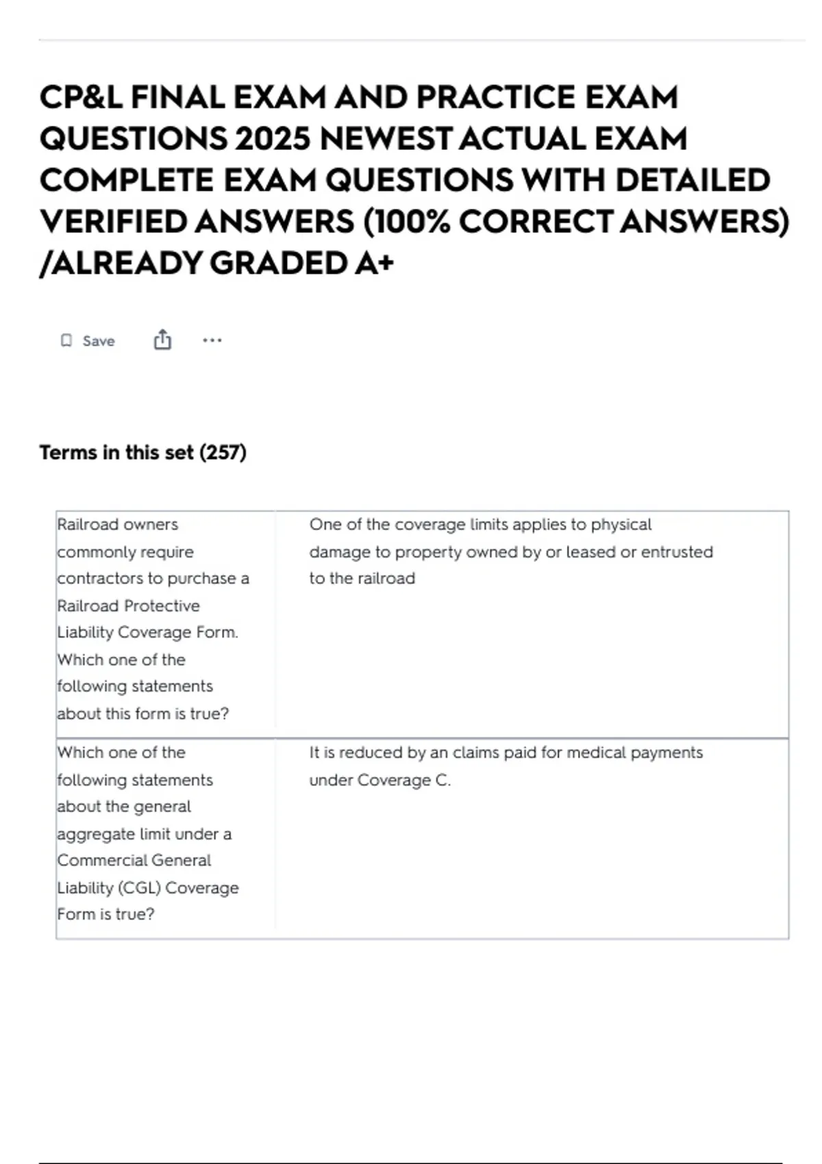 CP&L FINAL EXAM AND PRACTICE EXAM QUESTIONS 2025 NEWEST ACTUAL EXAM COMPLETE EXAM QUESTIONS WITH DETAILED VERIFIED ANSWERS (100% CORRECT ANSWERS) /ALREADY GRADED A+