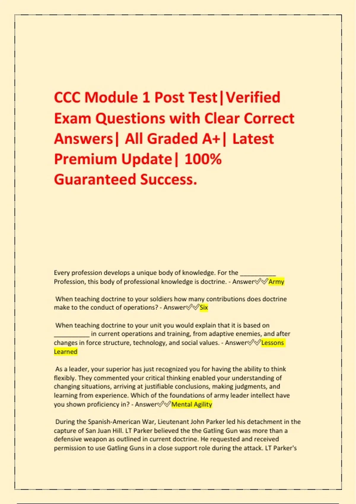 Exam Questions with Clear Correct