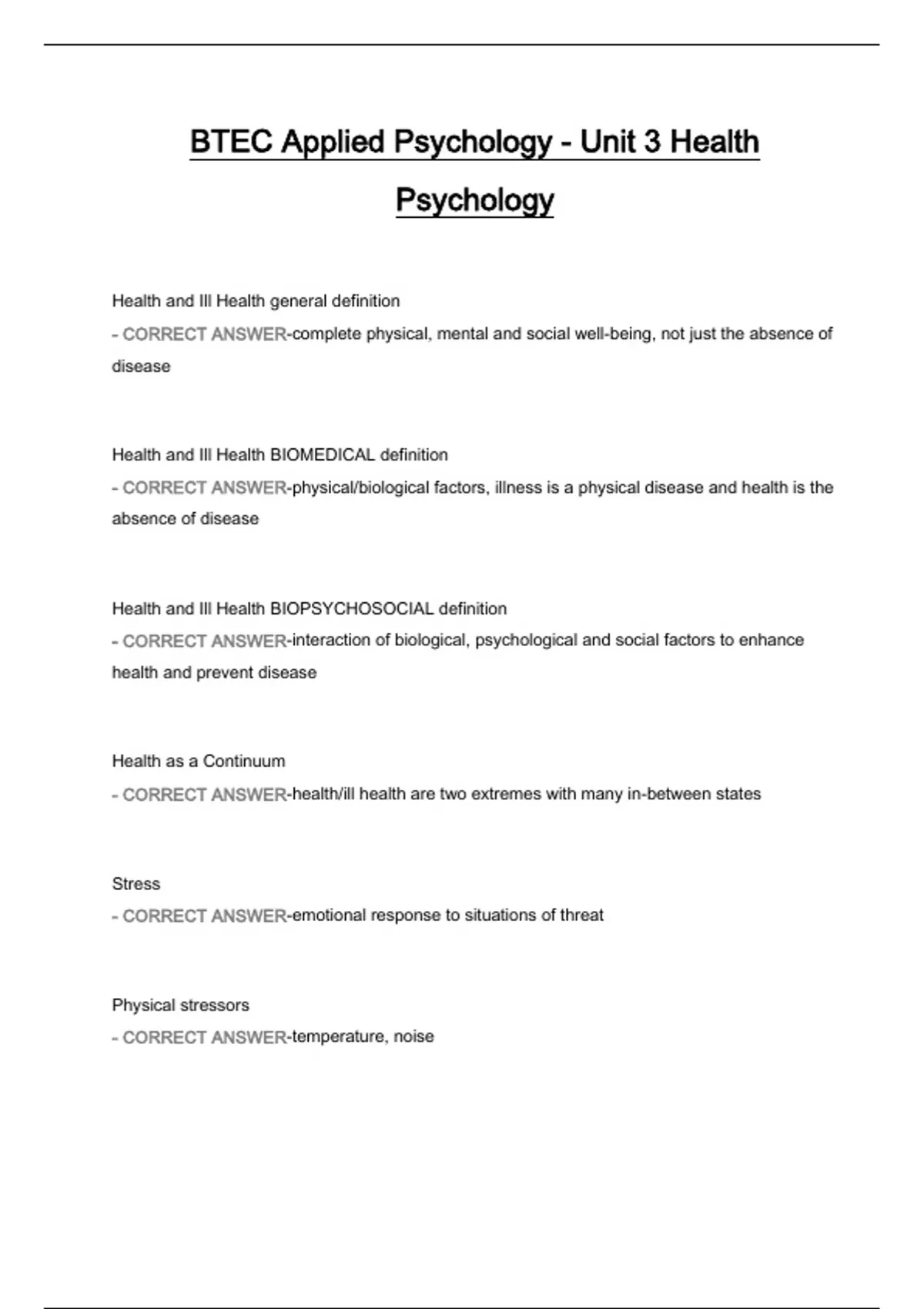- CORRECT ANSWER-health/ill health are two extremes with many in-between states