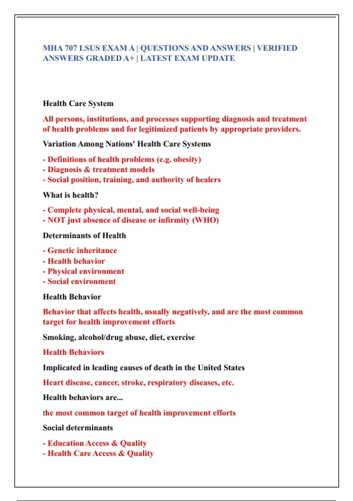 MHA 707 LSUS EXAM A | QUESTIONS AND ANSWERS | VERIFIED
