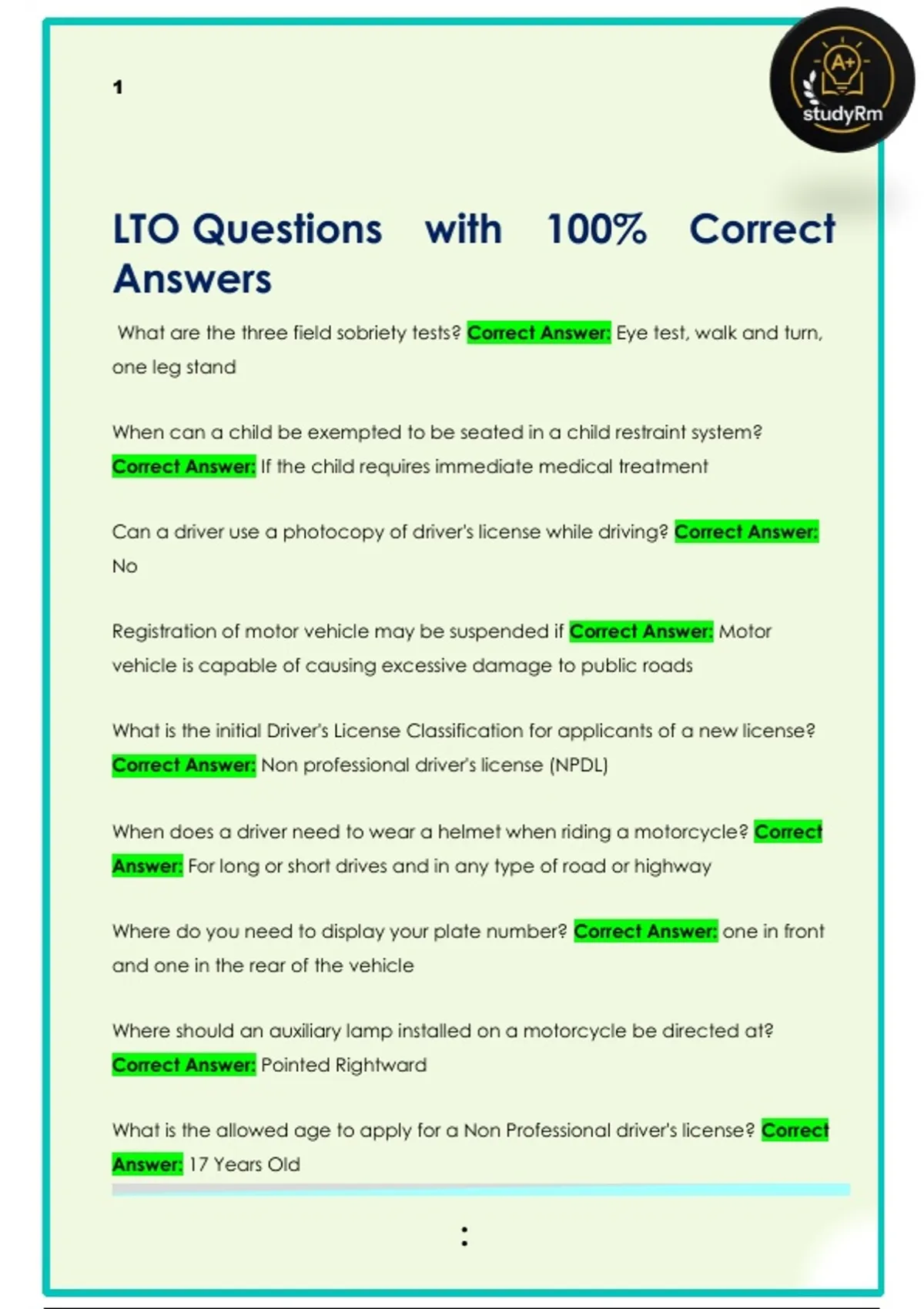 What are the three field sobriety tests? Correct Answer: Eye test, walk and turn,