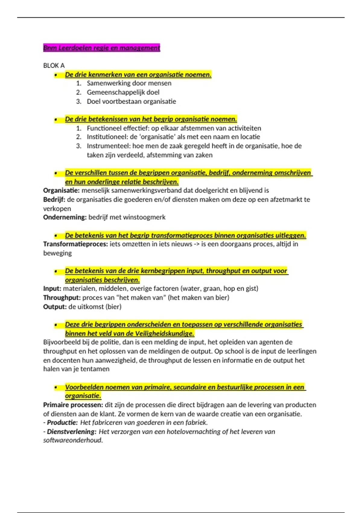 Bnm Leerdoelen regie en management