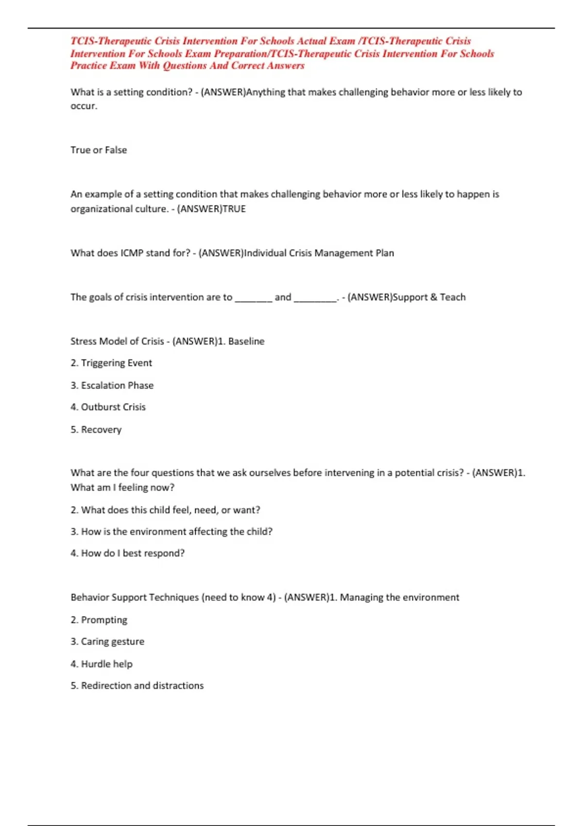 , TCIS-Therapeutic Crisis Intervention For Schools Actual Exam /TCIS-Therapeutic Crisis