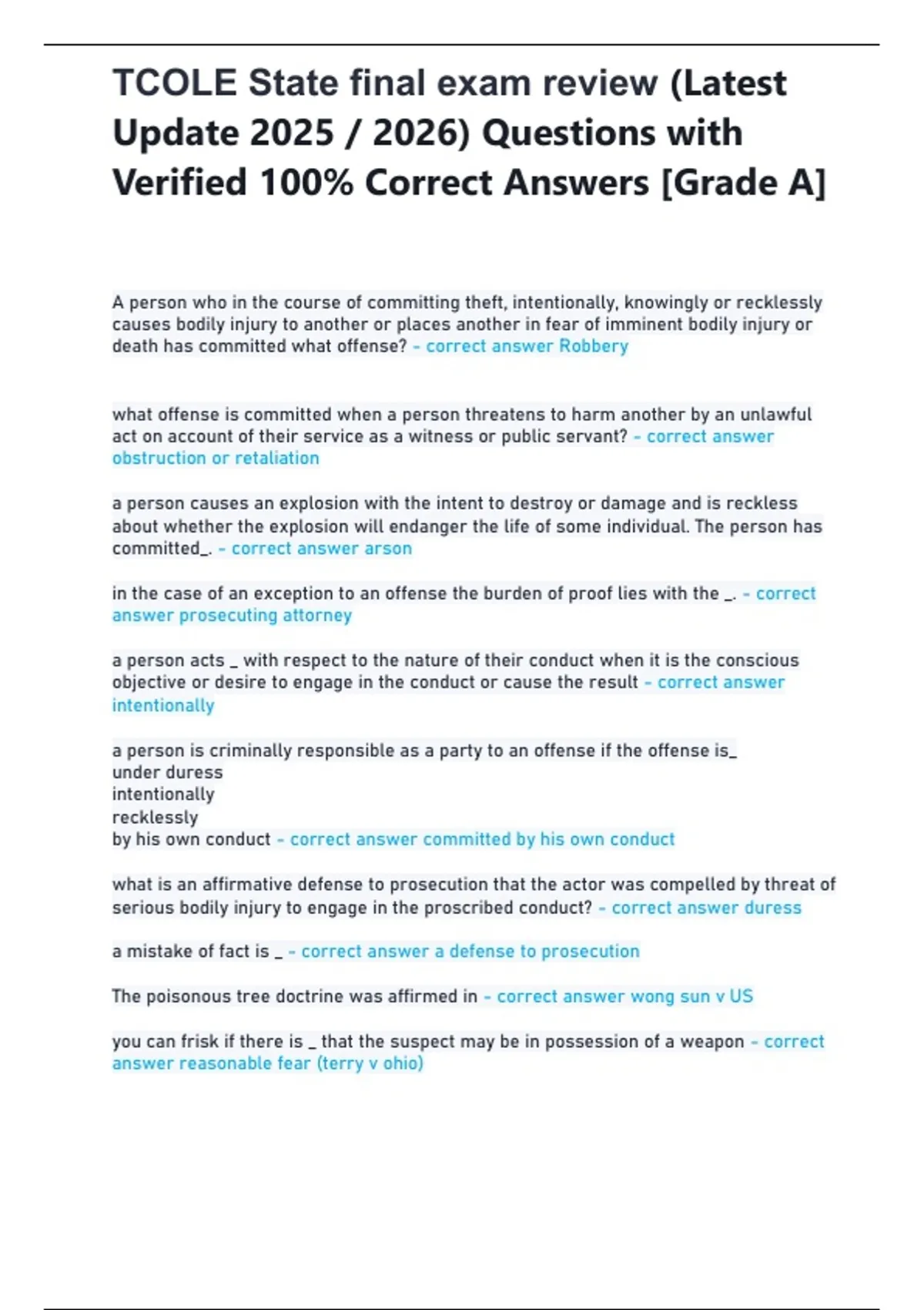 , TCOLE State final exam review (Latest