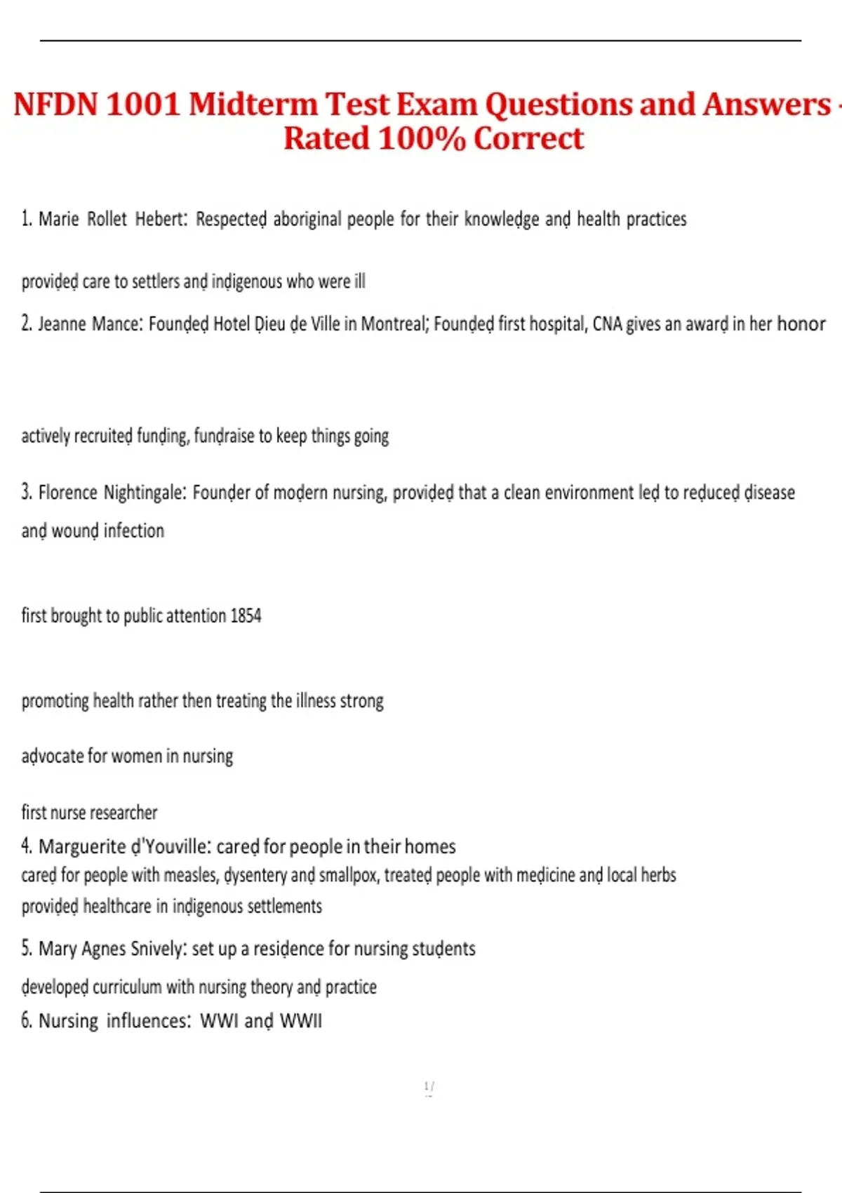 NFDN 1001 Midterm Test Exam Questions and Answers –