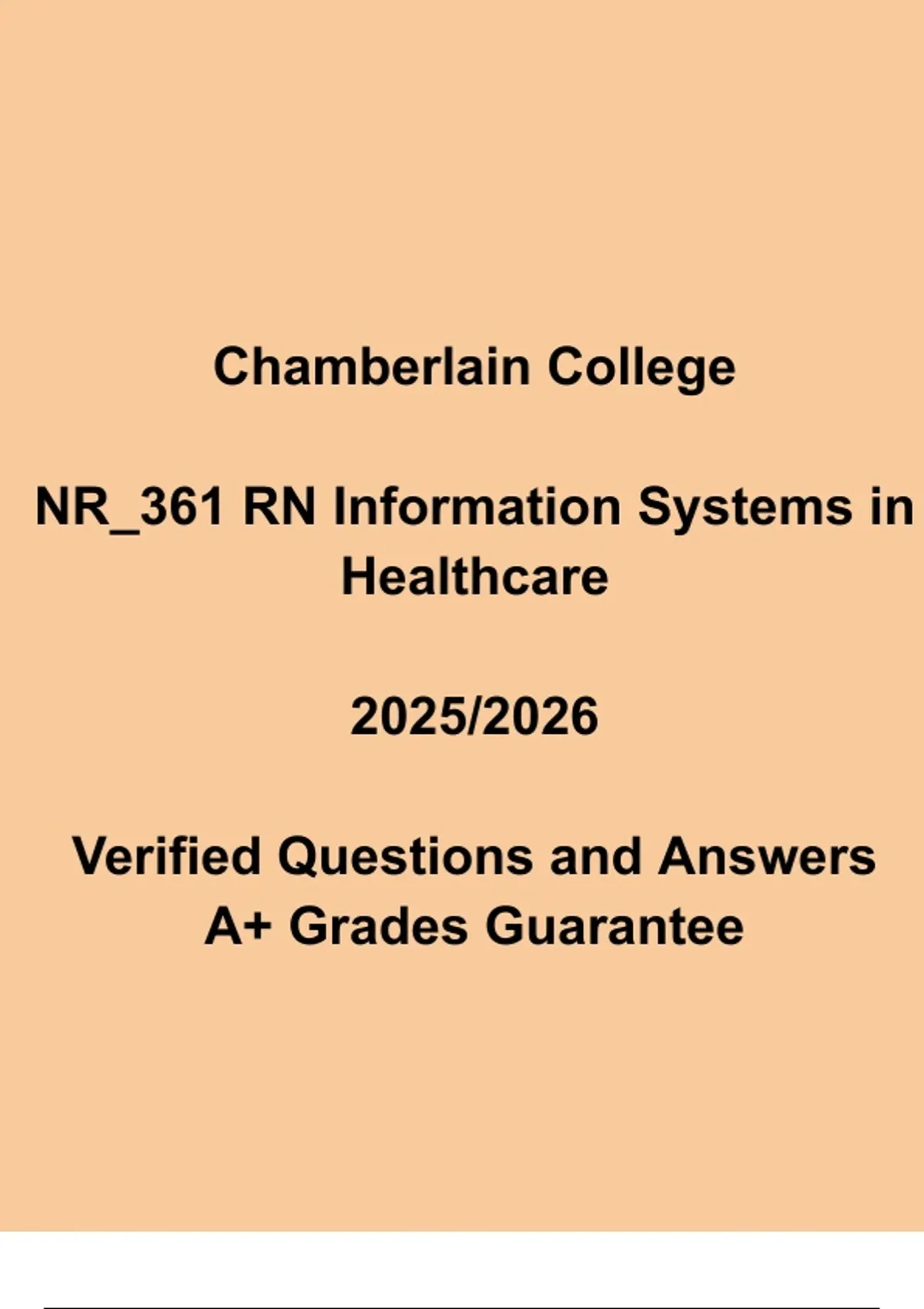 Master NR 361 – RN Information Systems in Healthcare with this expert-verified 2025/2026 Study Guide, tailored for Chamberlain College of Nursing students. This comprehensive resource includes accurate exam questions, discussion post solutions, and detailed explanations covering healthcare informatics, data management, electronic health records (EHRs), and technology’s role in patient care. Perfect for assignments, quizzes, and exams, this NR 361 Study Pack helps nurses understand how informatics enhances communication, safety, and clinical decision-making across healthcare settings.