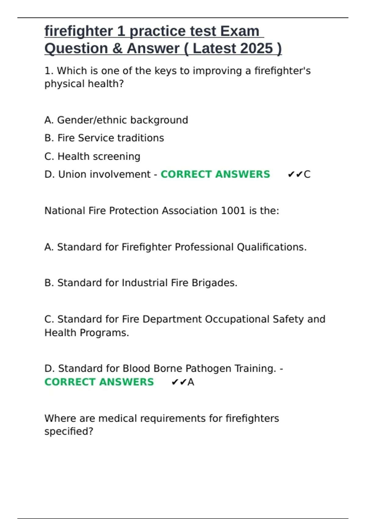 D. NFPA 1500 - CORRECT ANSWERS ✔✔B