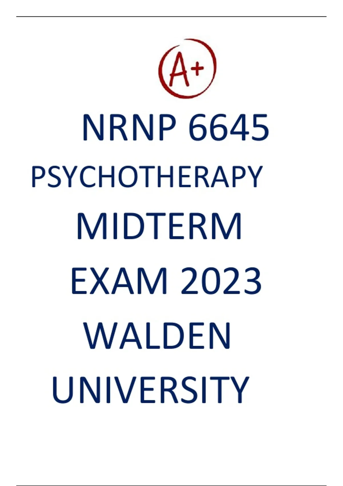 NRNP 6645 PSYCHOTHERAPY MIDTERM EXAM 2023 WALDEN UNIVERSITY