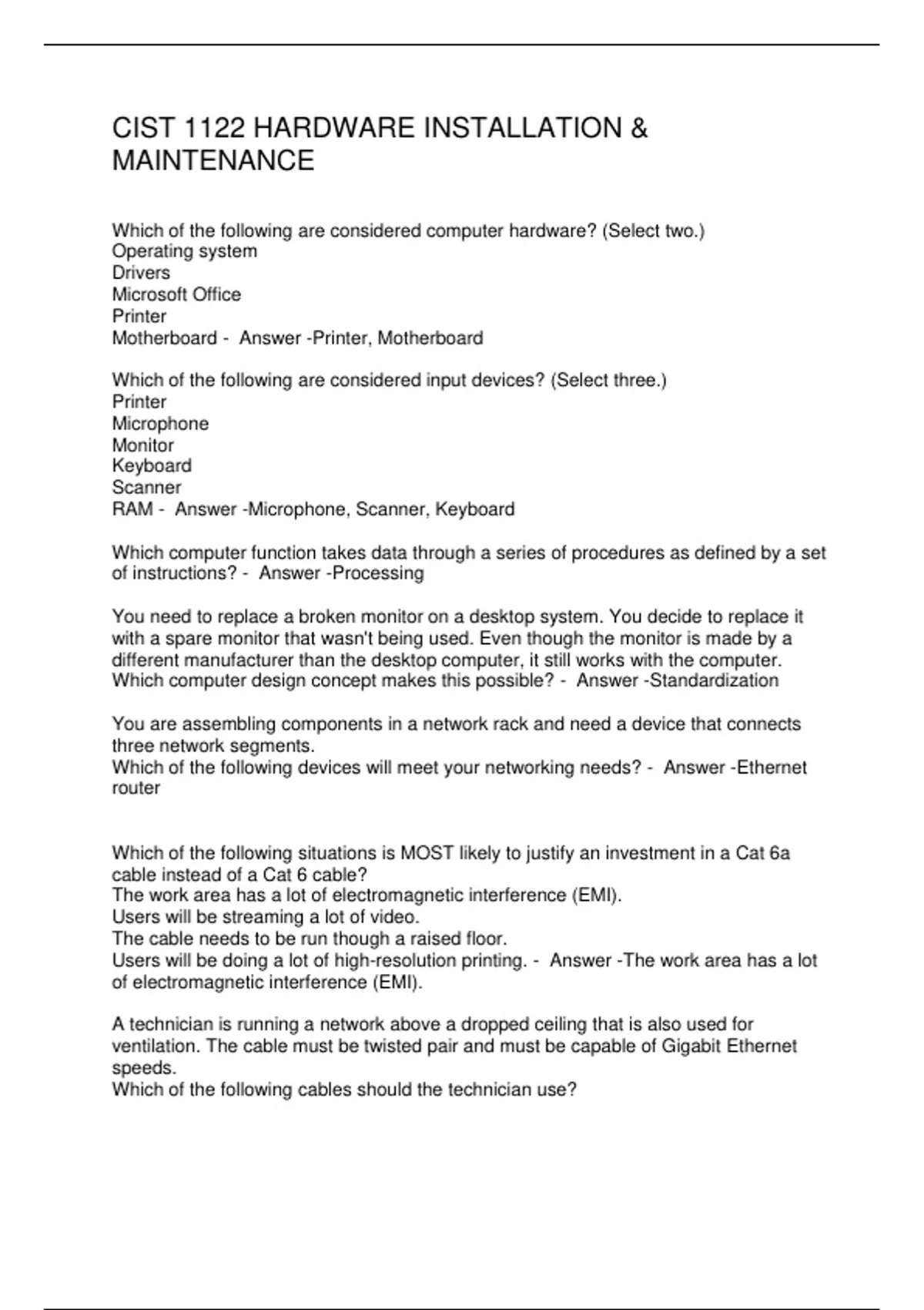 CIST 1122 HARDWARE INSTALLATION & MAINTENANCE