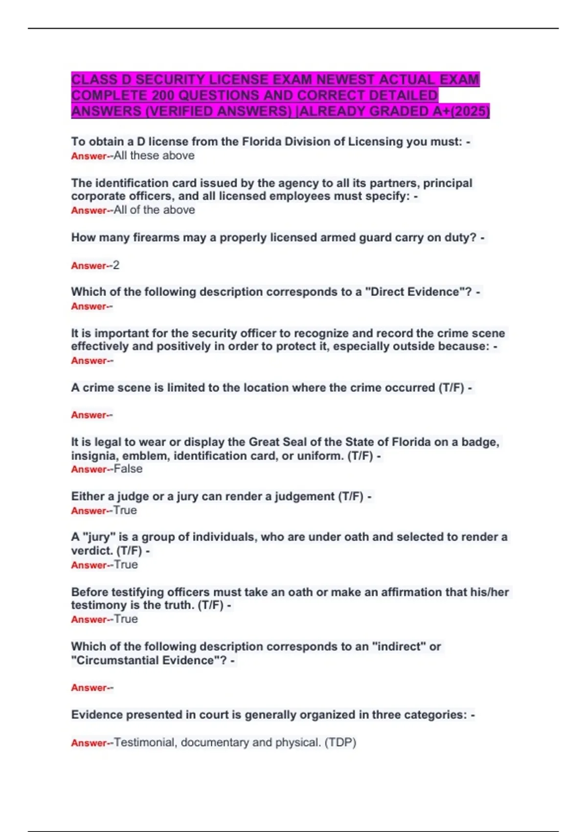 ANSWERS (VERIFIED ANSWERS) |ALREADY GRADED A+(2025)