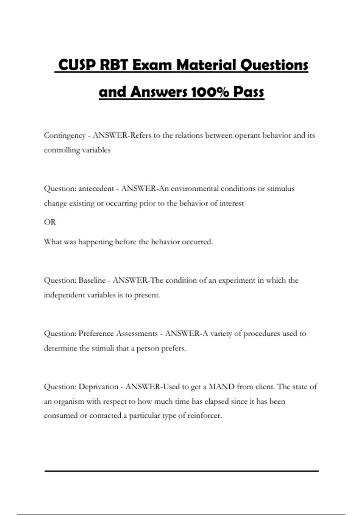 CUSP RBT Exam Material Questions and Answers 100% Pass