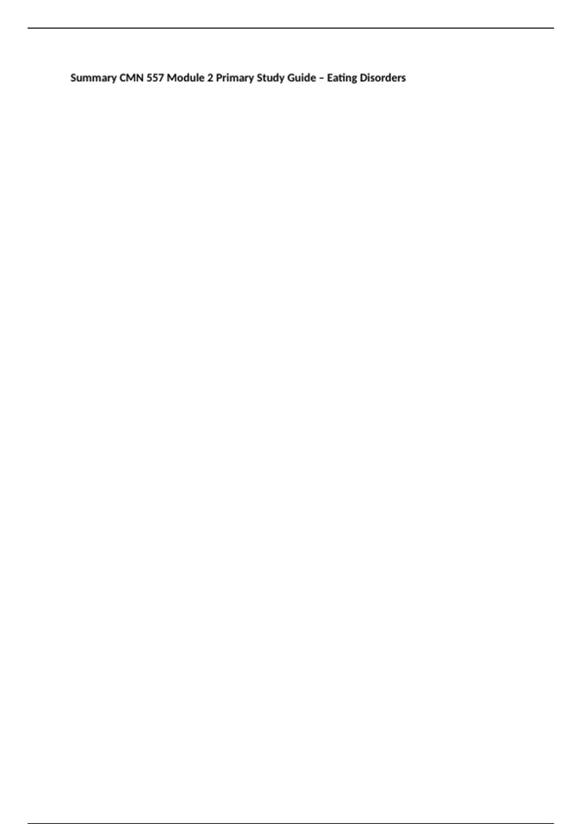 Summary CMN 557 Module 2 Primary Study Guide – Eating Disorders | Latest 2025/2026 Update with complete solutions. A+ grade guaranteed!!!