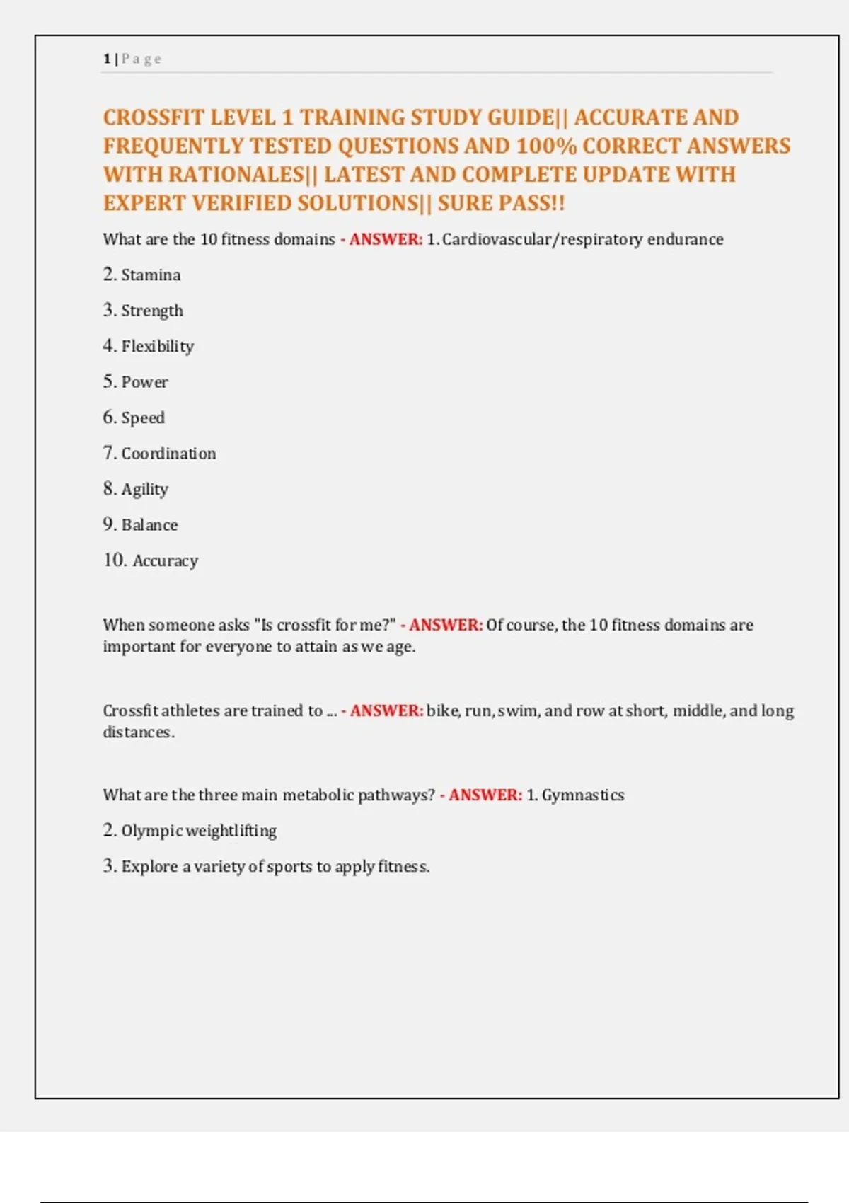 CrossFit Level 1 TEST STUDY QUESTIONS WITH COMPLETE SOLUTIONS.