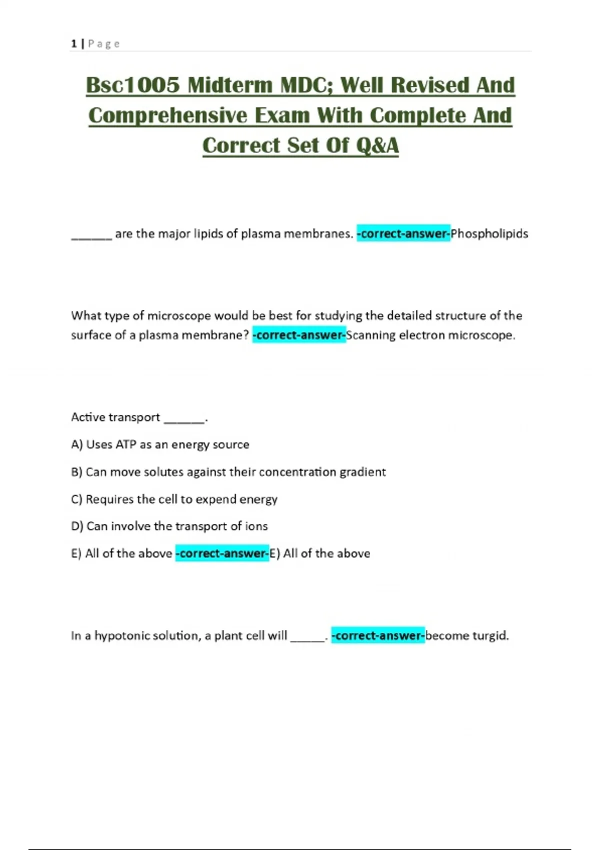 Bsc1005 Midterm MDC; Well Revised And Comprehensive Exam With Complete And Correct Set Of Q&A