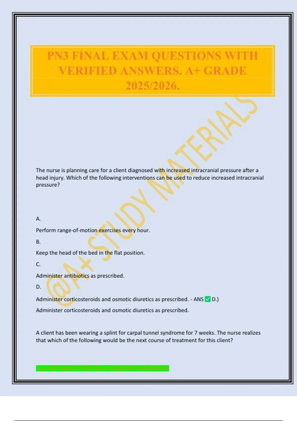 PN3 FINAL EXAM QUESTIONS WITH