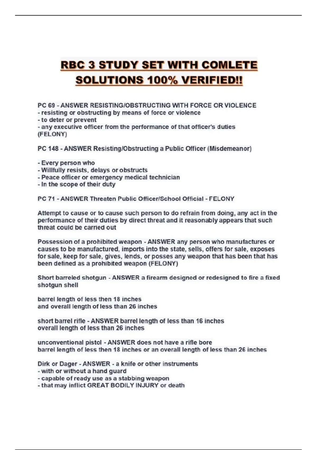 RBC 3 STUDY SET WITH COMLETE SOLUTIONS 100% VERIFIED!!...