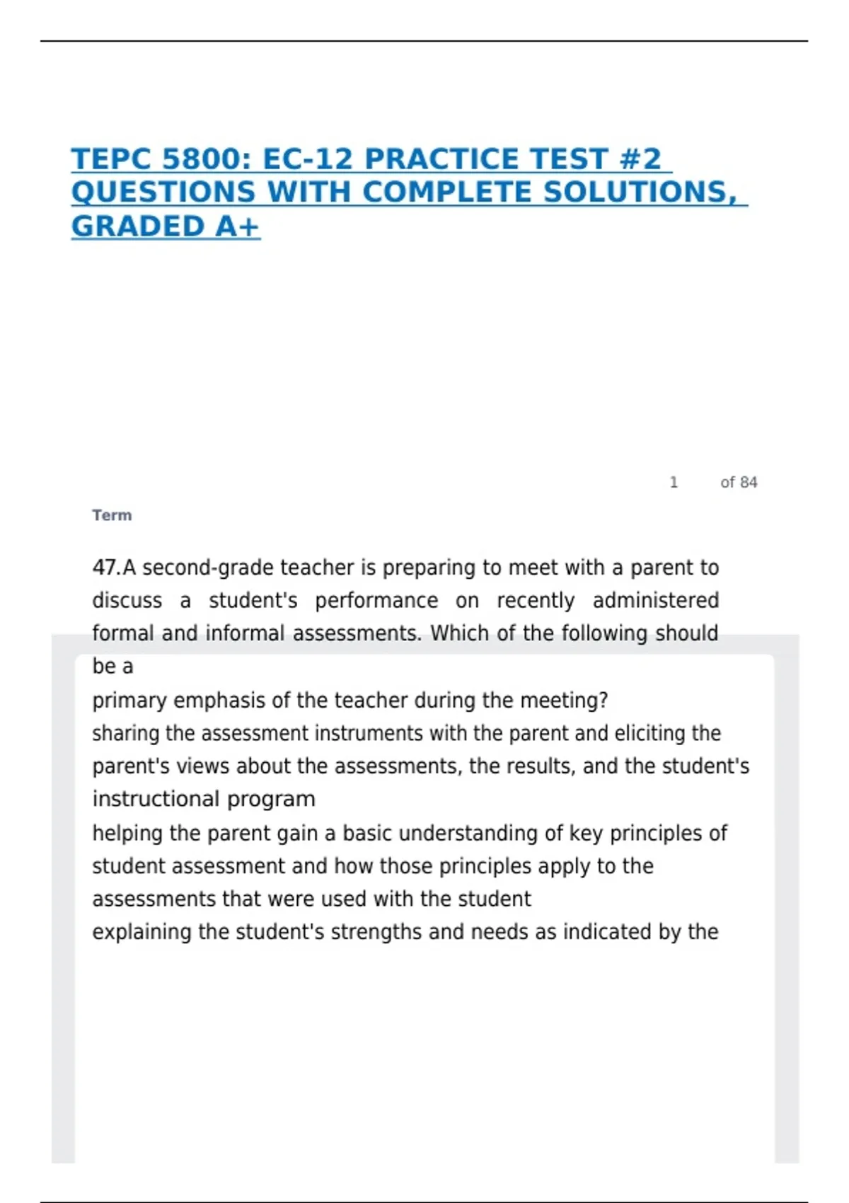 TEPC 5800: EC-12 PRACTICE TEST #2 QUESTIONS WITH COMPLETE SOLUTIONS, GRADED A+