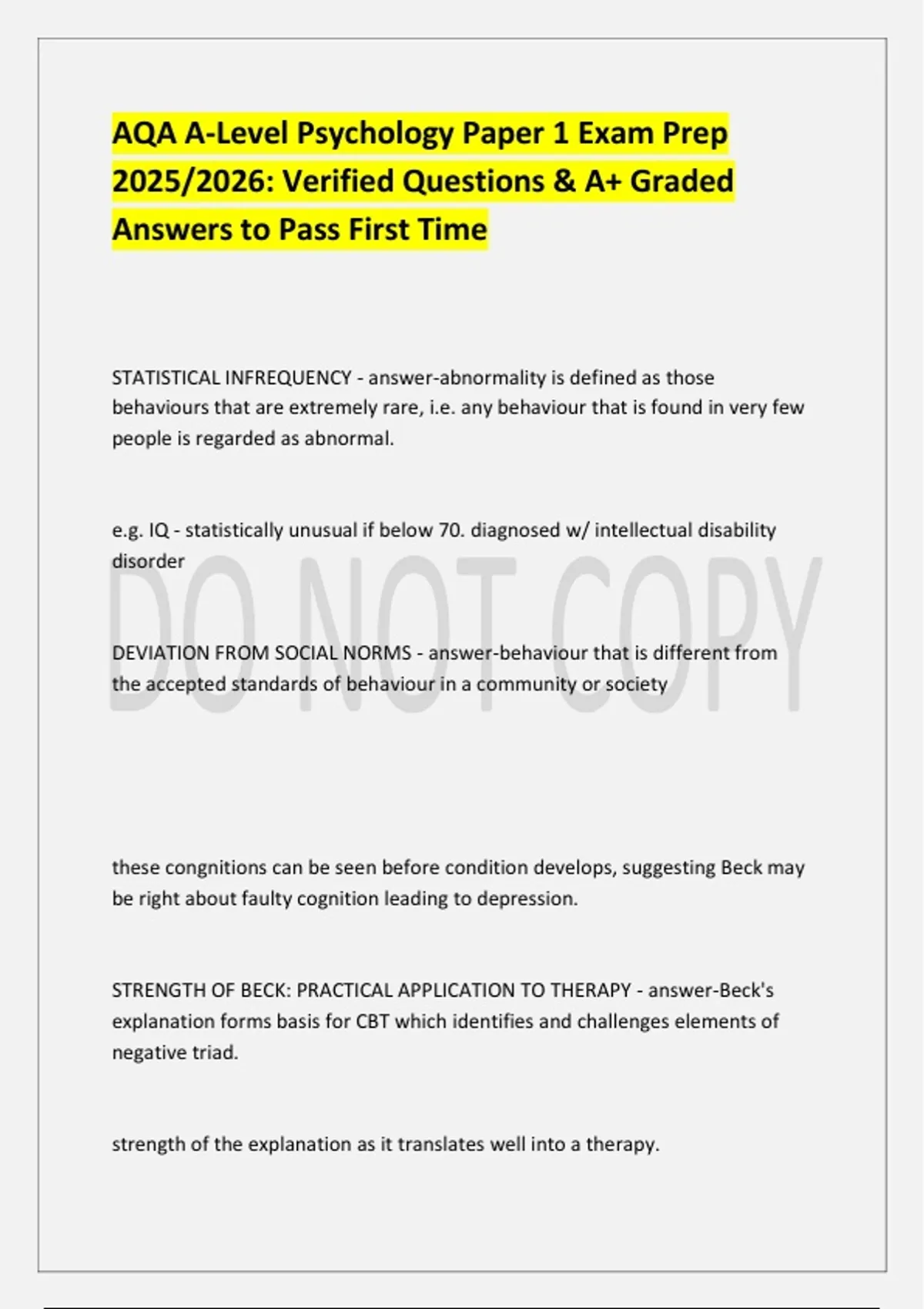 STRENGTH OF BECK: PRACTICAL APPLICATION TO THERAPY - answer-Beck's
