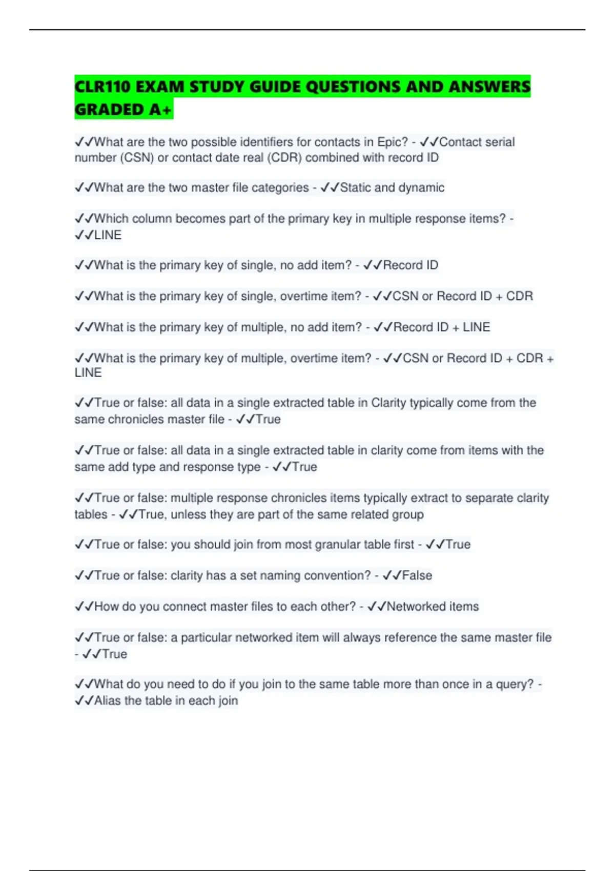 ✔✔True or false: multiple response chronicles items typically extract to separate clarity