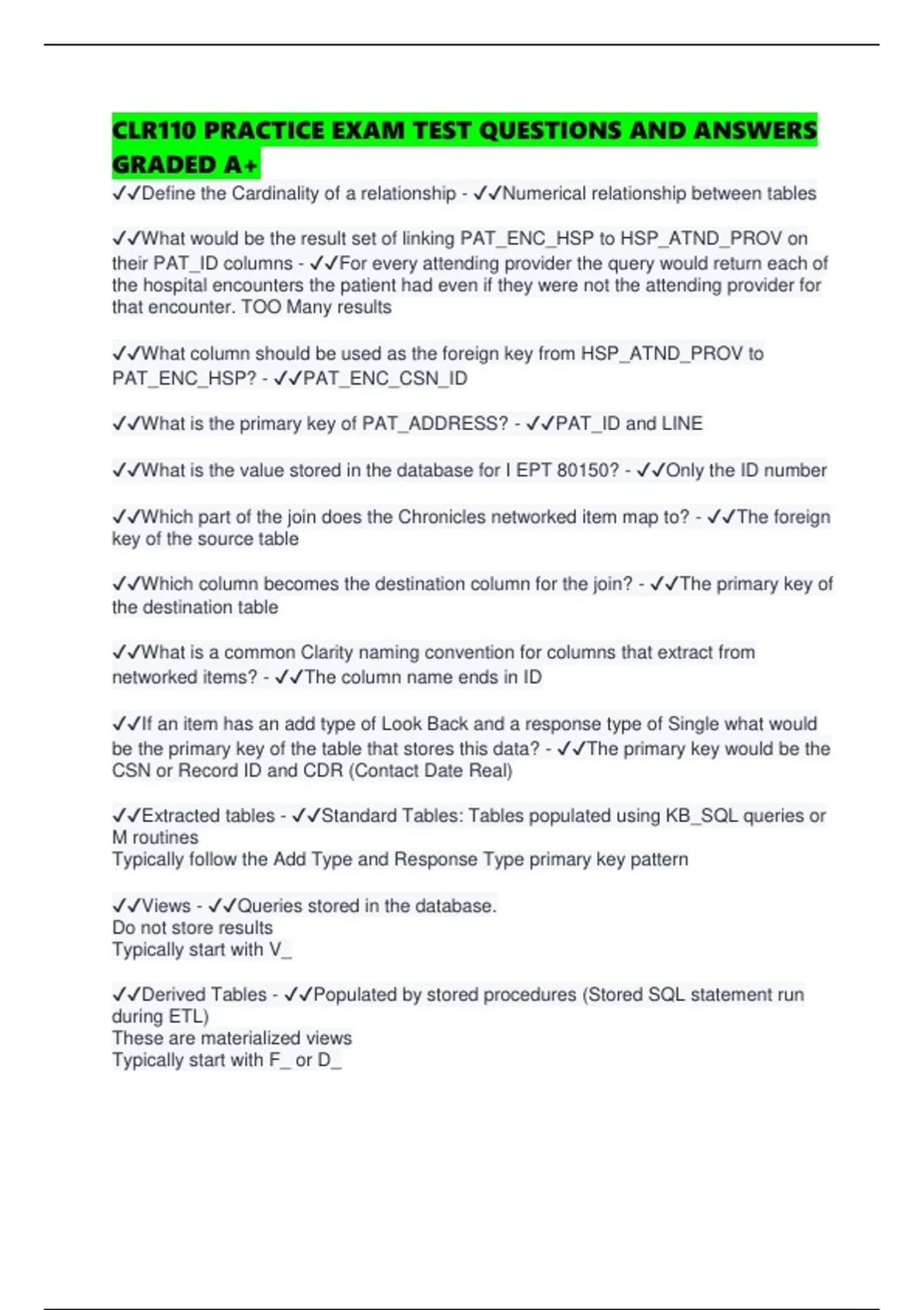 ✔✔What is the primary key of PAT_ADDRESS? - ✔✔PAT_ID and LINE