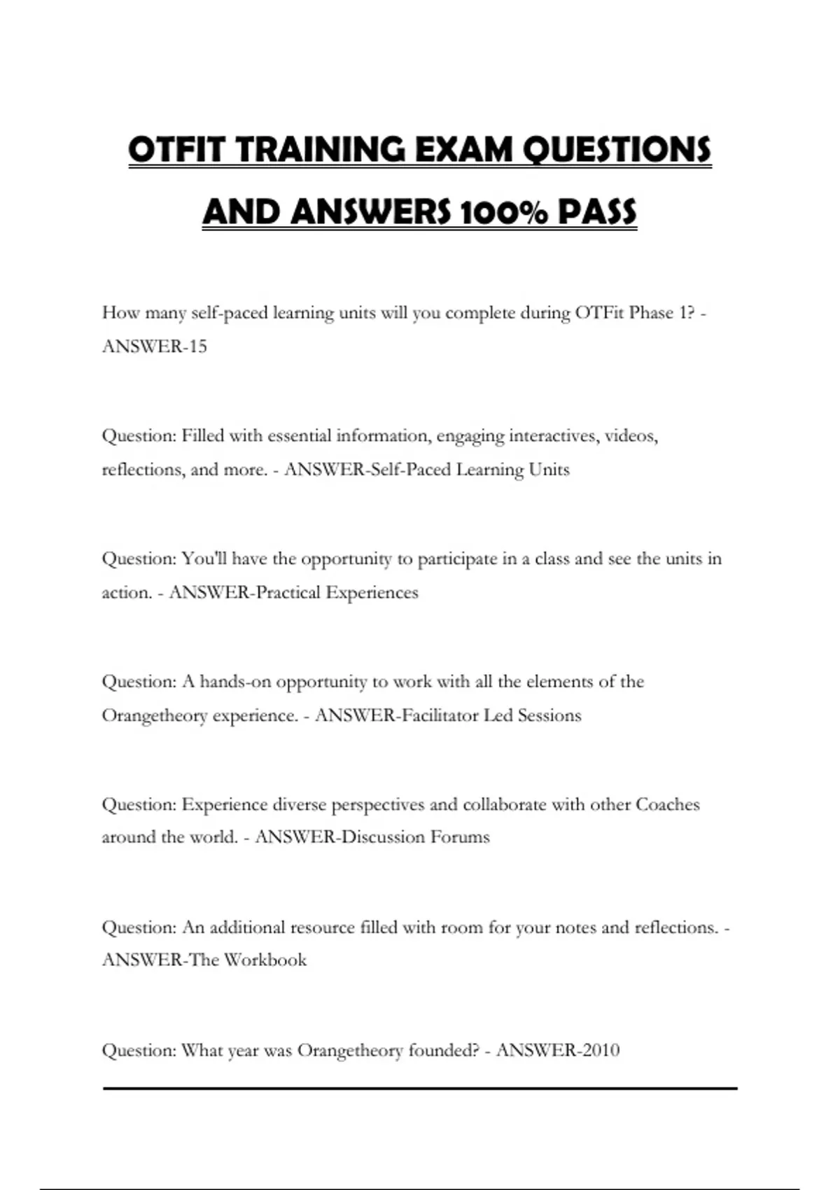 OTFIT TRAINING EXAM QUESTIONS AND ANSWERS 100% PASS