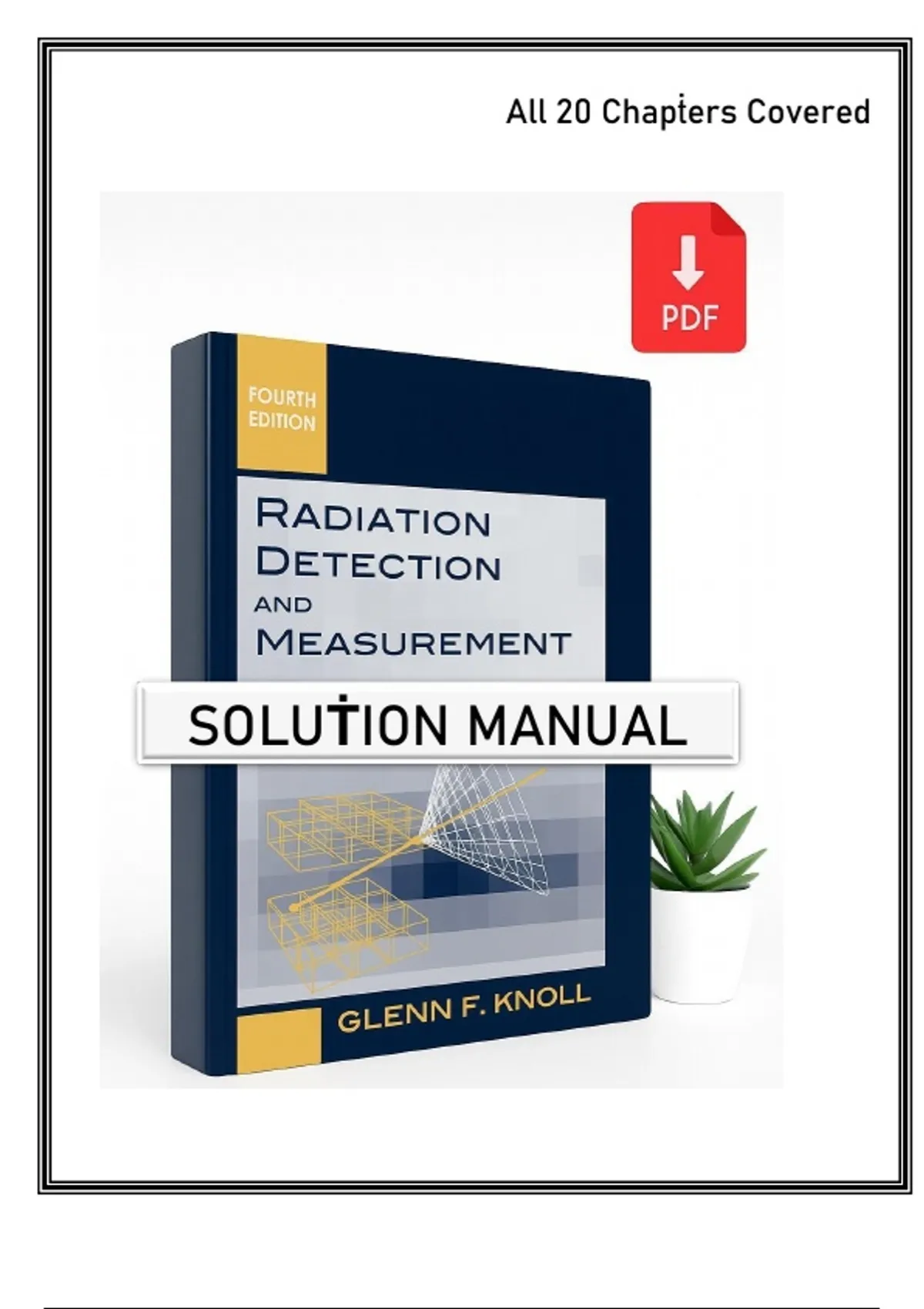 This is the complete, comprehensive Solutions Manual for the industry-standard textbook, Radiation Detection and Measurement, 4th Edition by Glenn F. Knoll. The manual includes detailed, step-by-step solutions for all problems and exercises across all 20 chapters of the text. It is an indispensable resource for advanced undergraduate and graduate students in Nuclear Engineering, Nuclear Physics, Medical Physics, and Health Physics. Solutions cover every major topic, including: Fundamental Principles: Radiation Interactions, Counting Statistics, and General Detector Properties. Detector Technologies: Ionization Chambers, Proportional Counters, Scintillation Detectors, Photomultiplier Tubes, and Semiconductor Detectors (Germanium, Silicon). Spectroscopy and Applications: Gamma-Ray and Neutron Spectroscopy, Digital Pulse Processing, and Dosimetry. Use this manual to verify homework, master complex derivations, and thoroughly prepare for comprehensive exams.