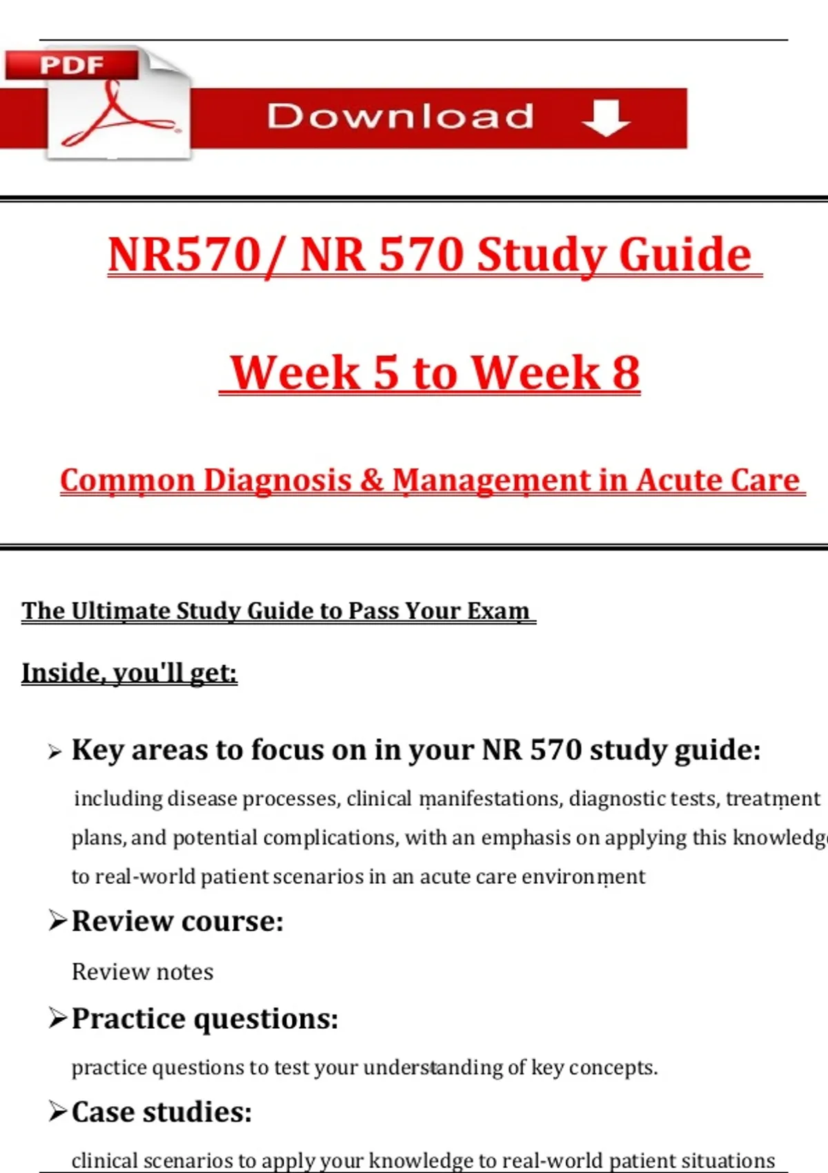 ➢ Key areas to focus on in your NR 570 study guide: