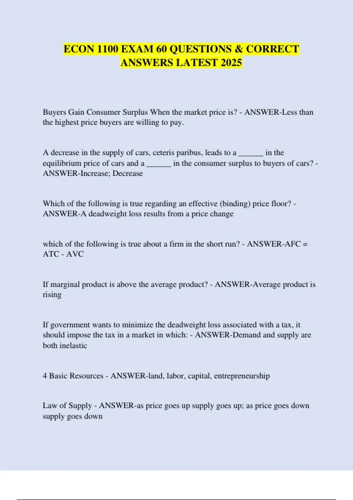 ECON 1100 EXAM 60 QUESTIONS & CORRECT