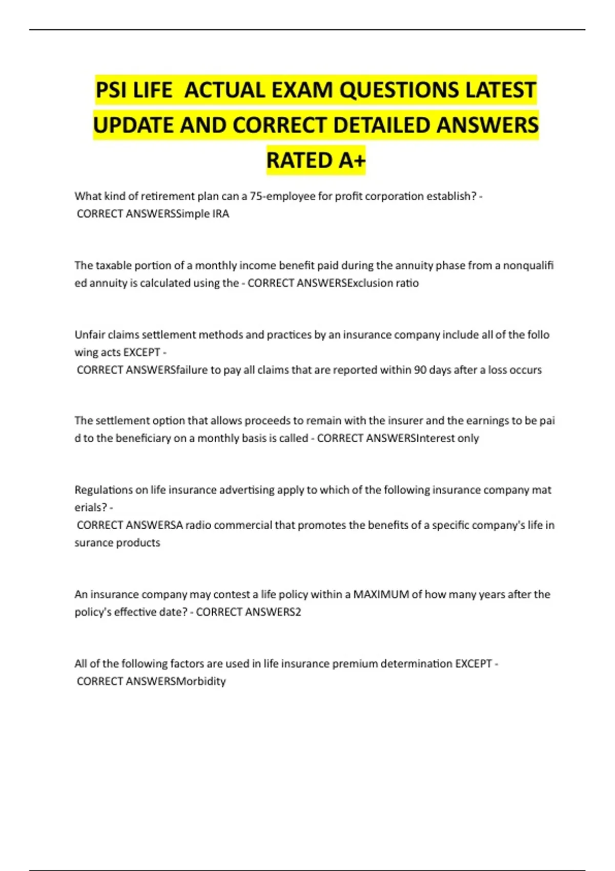 UPDATE AND CORRECT DETAILED ANSWERS