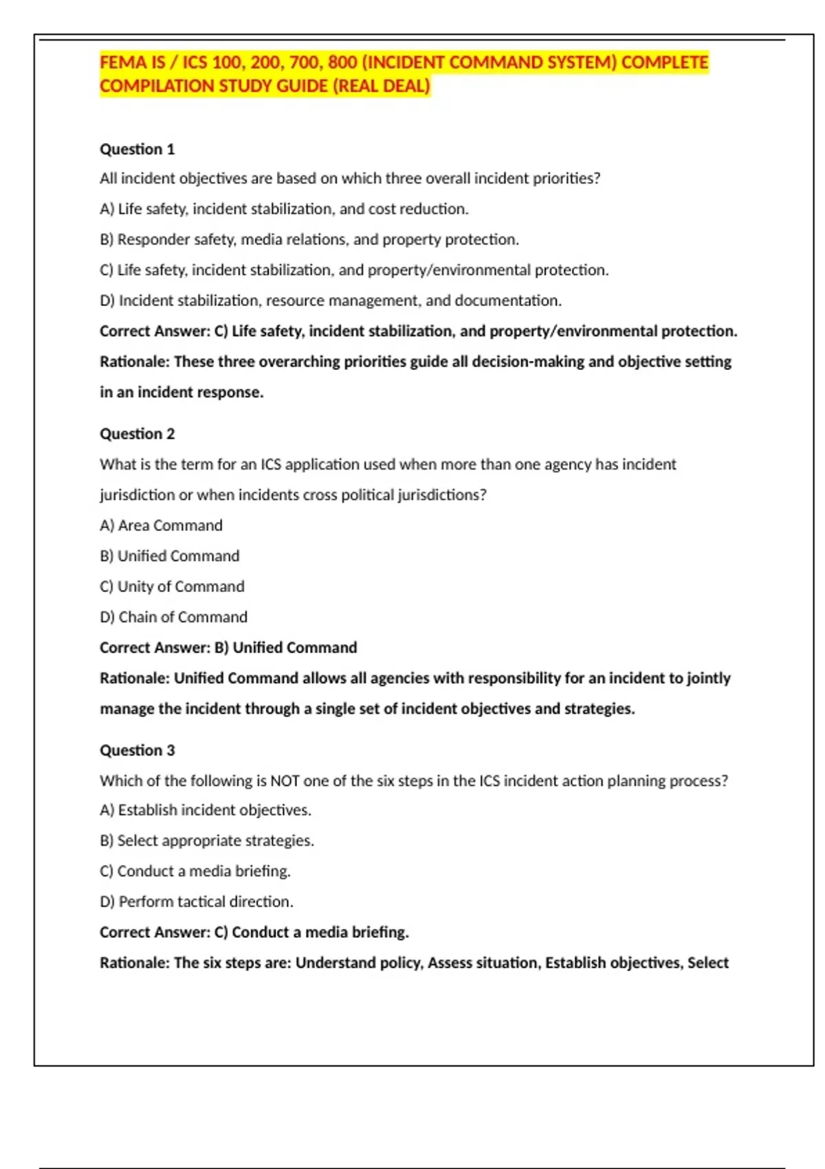Rationale: Unified Command allows all agencies with responsibility for an incident to jointly