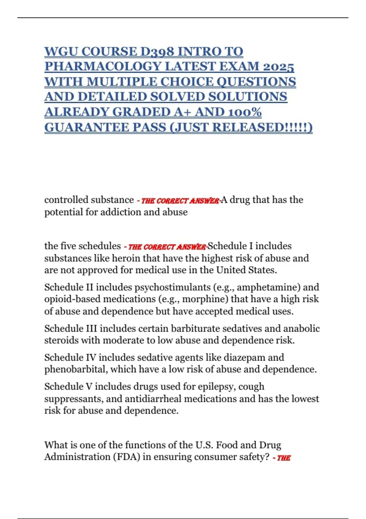 ,CORRECT ANSWER-Investigating and removing unsafe drugs from