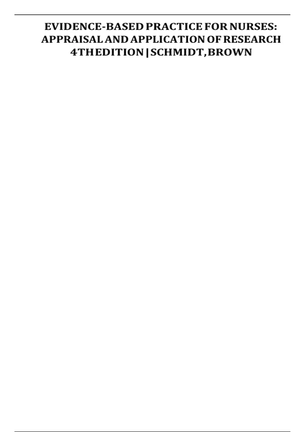 Test Bank For Evidence-Based Practice for Nurses Appraisal and Application of Research 6th Edition by Nola A. Schmidt, Janet M. Brown.