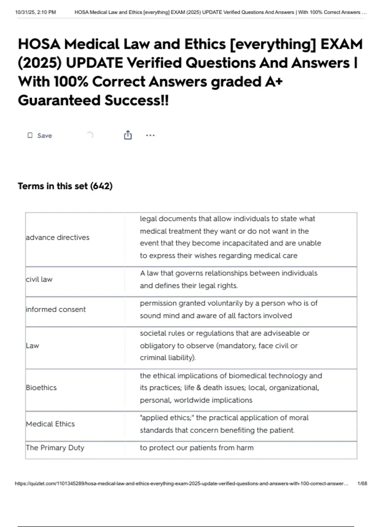 https://quizlet.com/1101345289/hosa-medical-law-and-ethics-everything-exam-2025-update-verified-questions-and-answers-with-100-correct-answer… 1/68