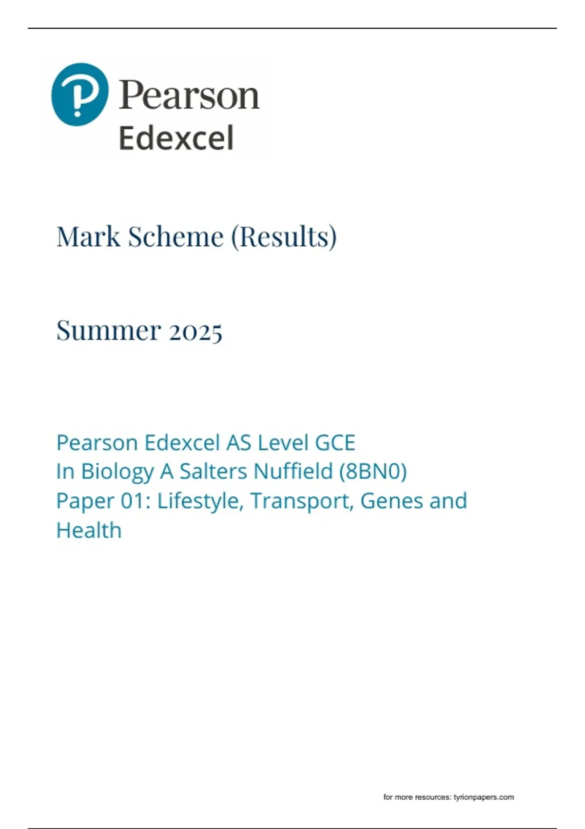 2025 Pearson Edexcel GCE Biology A (Salters Nuffield) AS Paper 1 - Mark Scheme