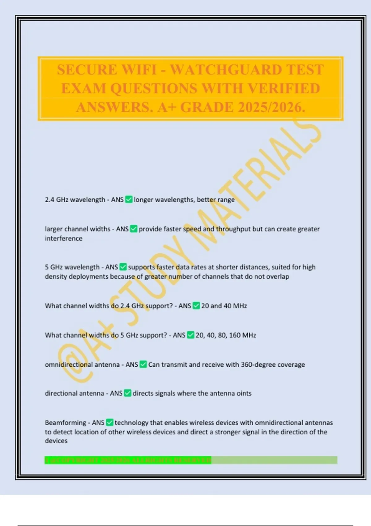 SECURE WIFI - WATCHGUARD TEST EXAM QUESTIONS WITH VERIFIED ANSWERS. A+ GRADE 2025/2026.