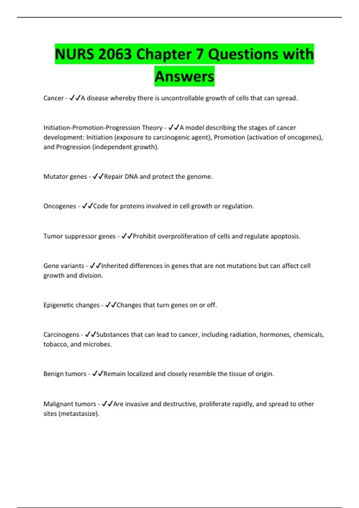 Tumor suppressor genes - ✔✔Prohibit overproliferation of cells and regulate apoptosis.