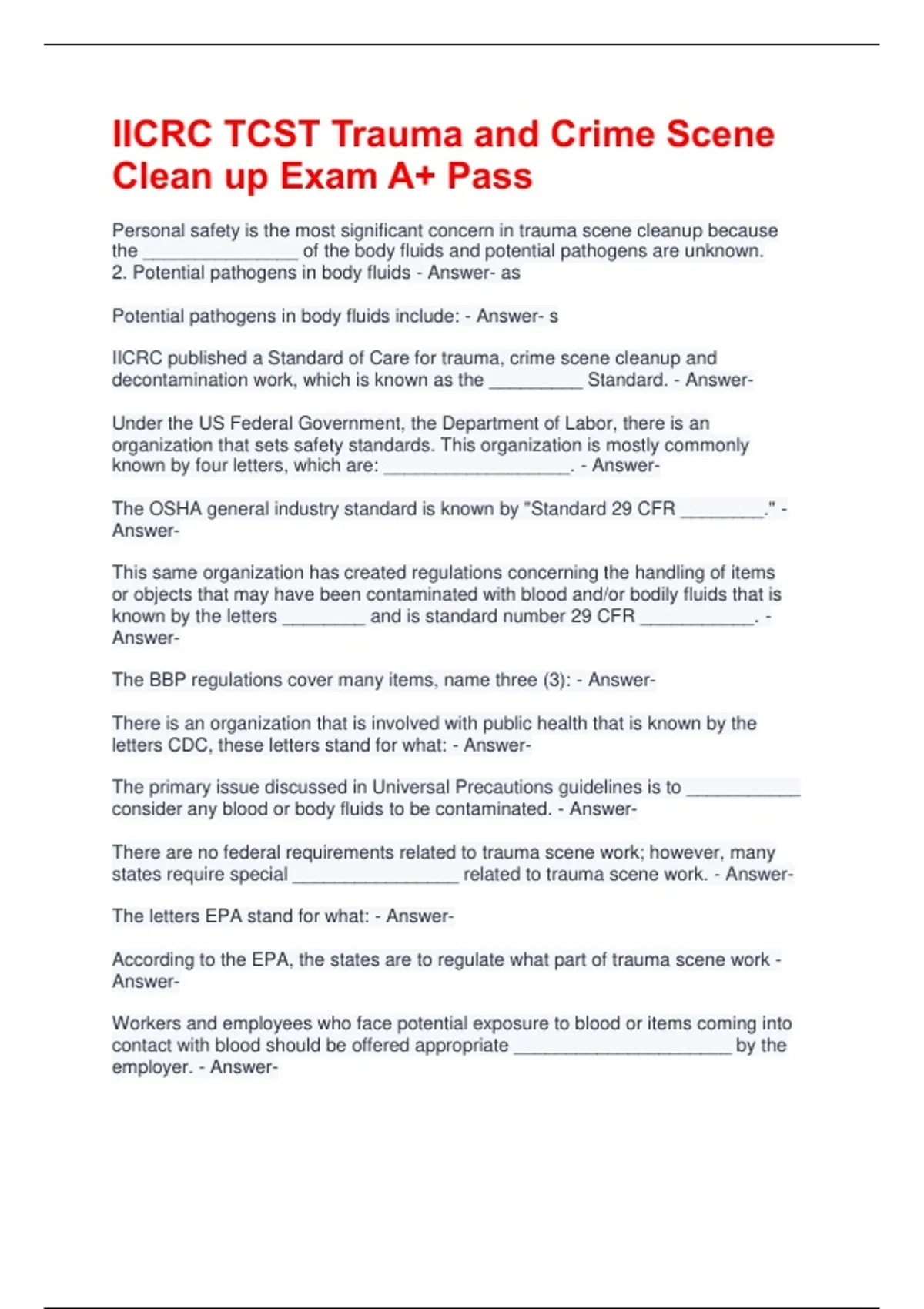 IICRC TCST Trauma and Crime Scene Clean up Exam A+ Pass