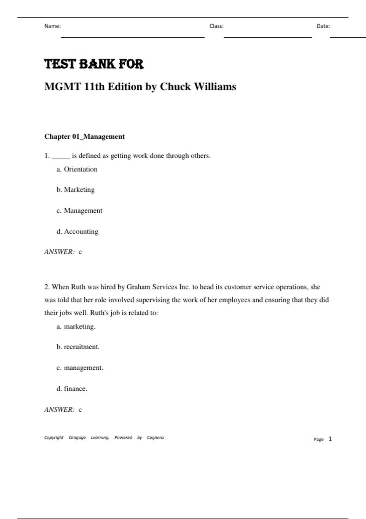 Test bank for MGMT 11th edition by Chuck Williams| ALL CHAPTERS Test bank for MGMT 11th edition by Chuck Williams| ALL CHAPTERS
