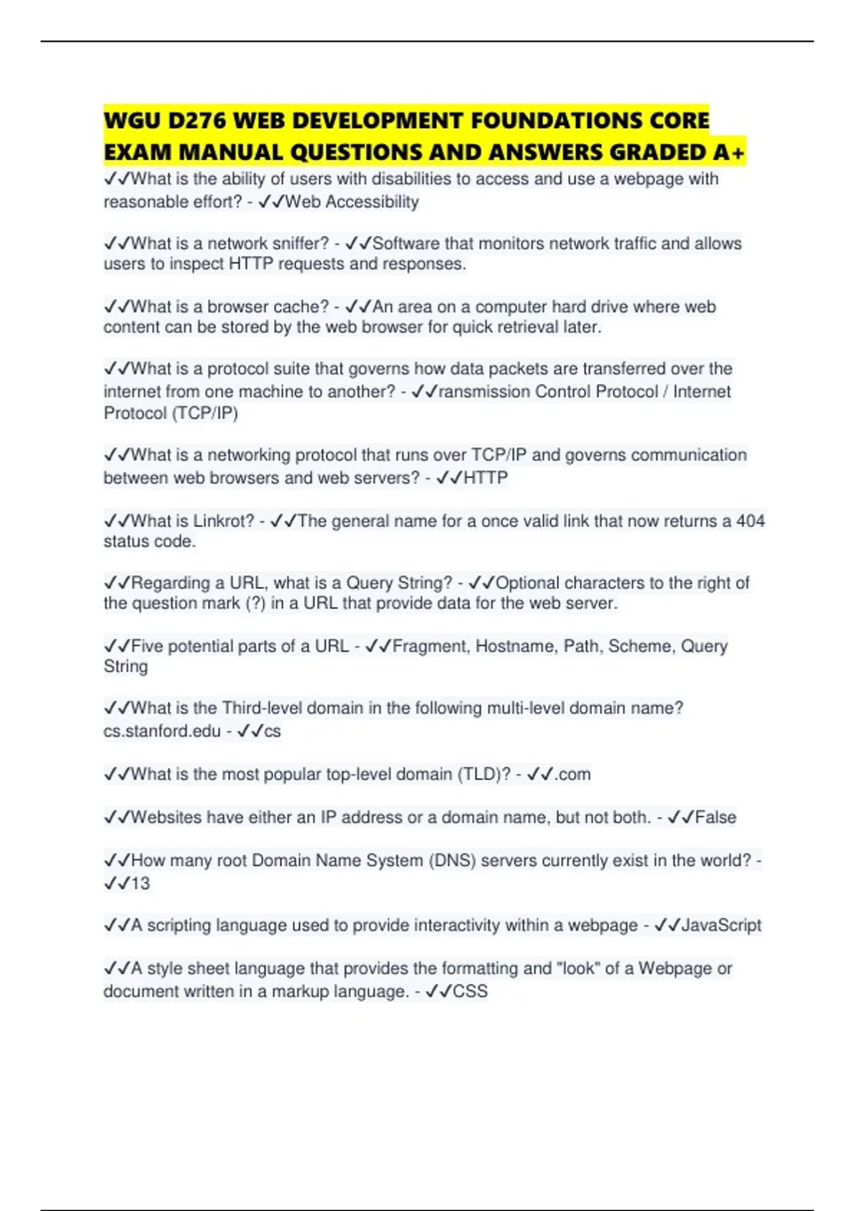 ✔✔Regarding a URL, what is a Query String? - ✔✔Optional characters to the right of