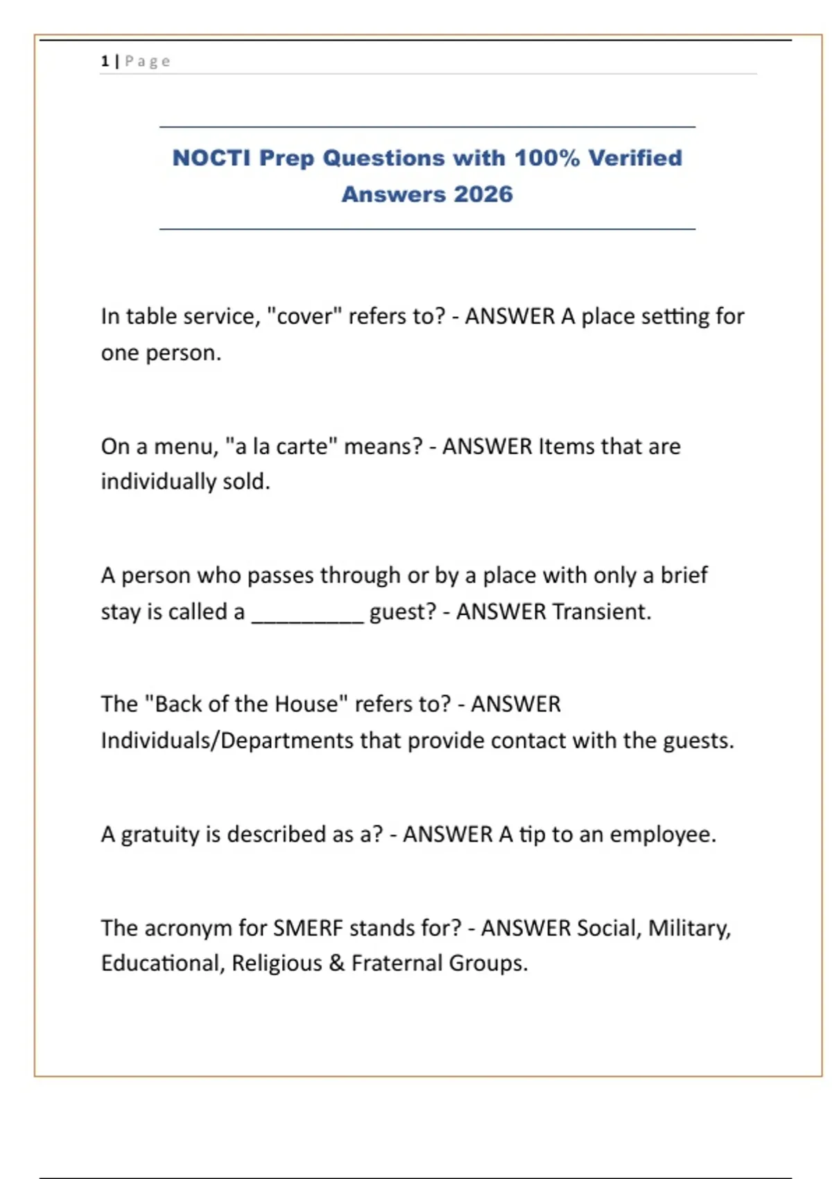 NOCTI Prep Questions with 100% Verified