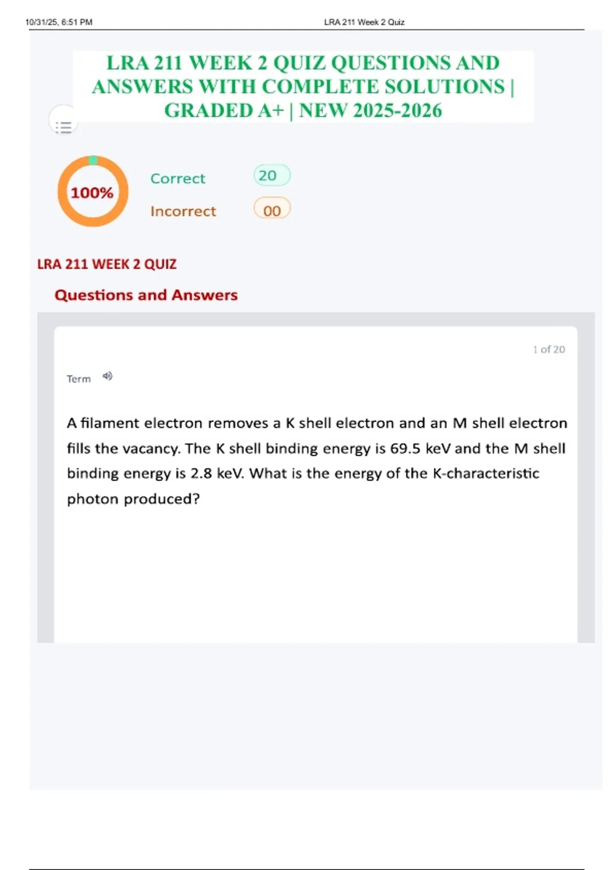 LRA 211 WEEK 2 QUIZ QUESTIONS AND ANSWERS WITH COMPLETE SOLUTIONS | GRADED A+ | NEW