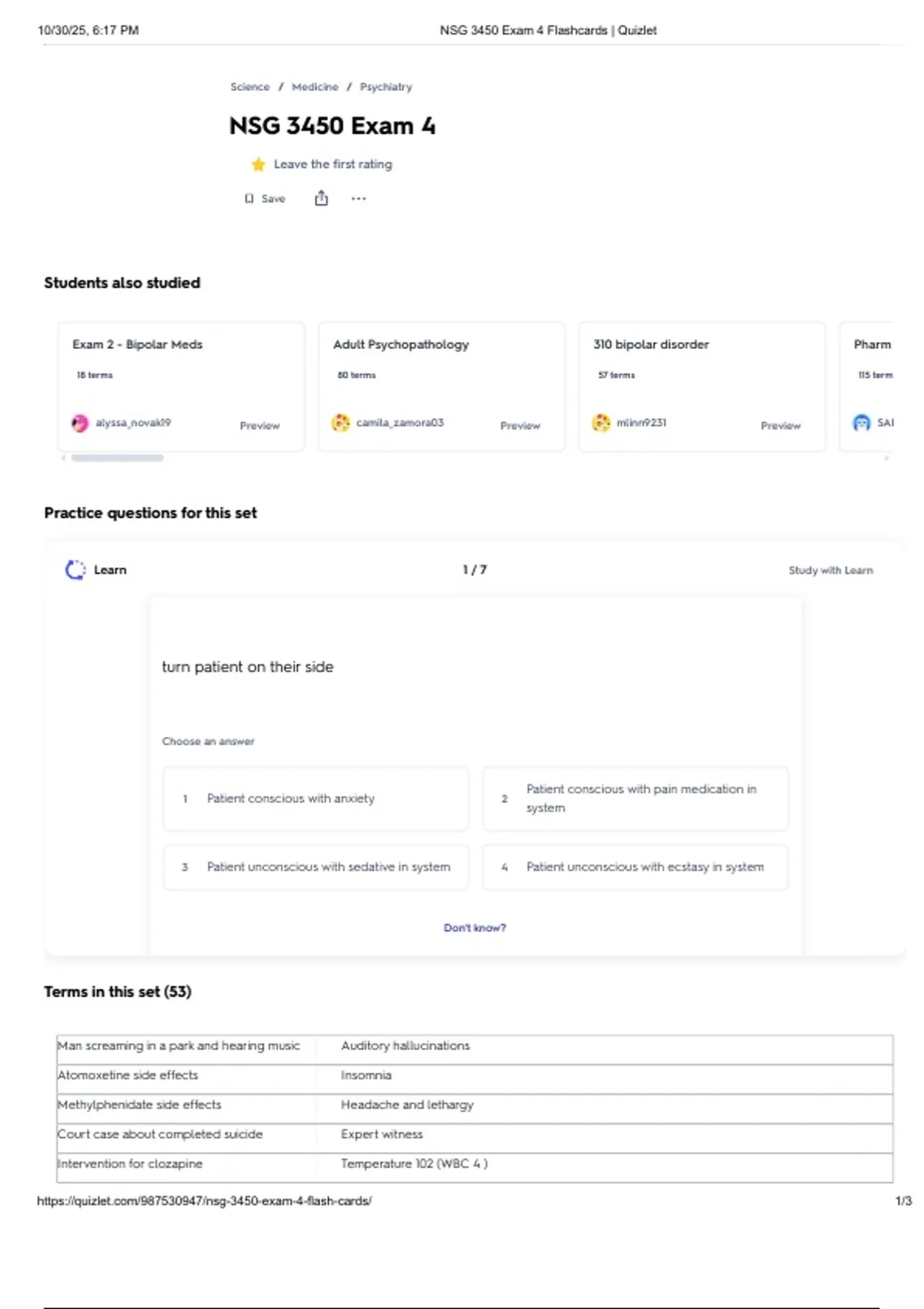 10/30/25, 6:17 PM NSG 3450 Exam 4 Flashcards | Quizlet