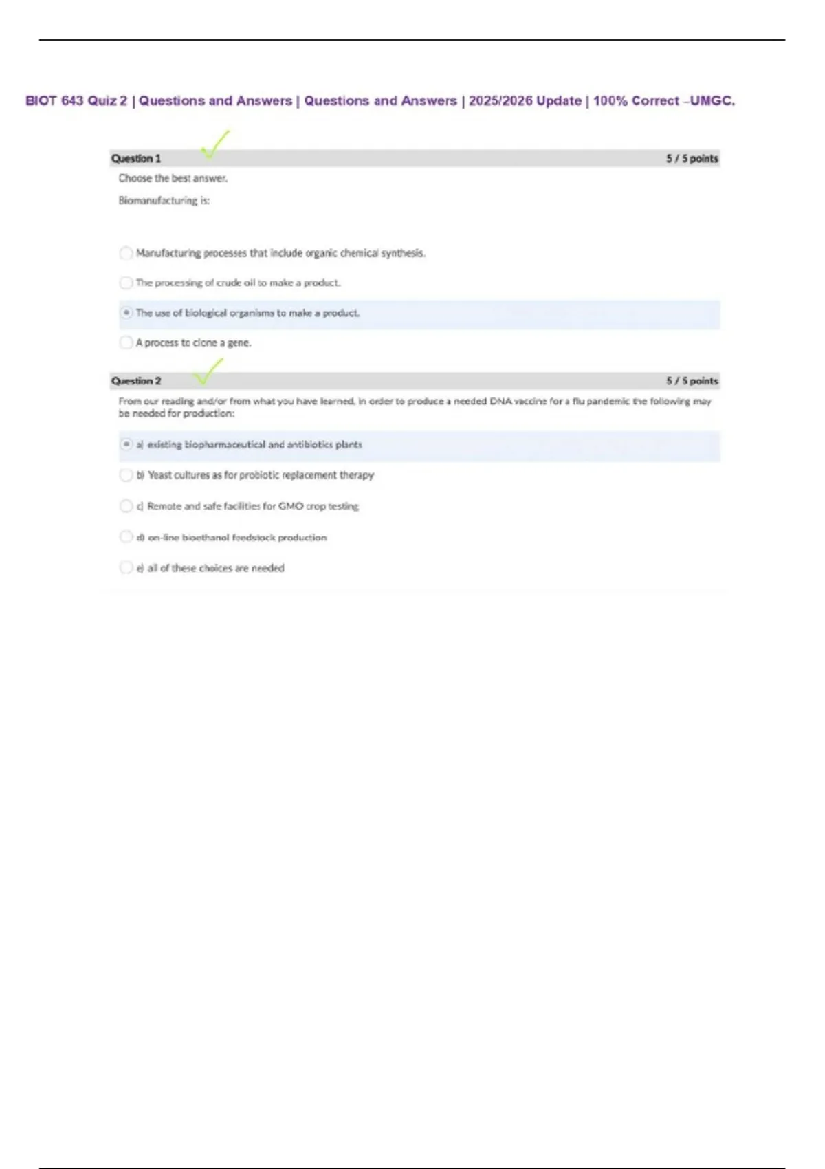 BIOT 643 Quiz 2 | Questions and Answers | Questions and Answers | 2025/2026 Update | 100% Correct –UMGC.